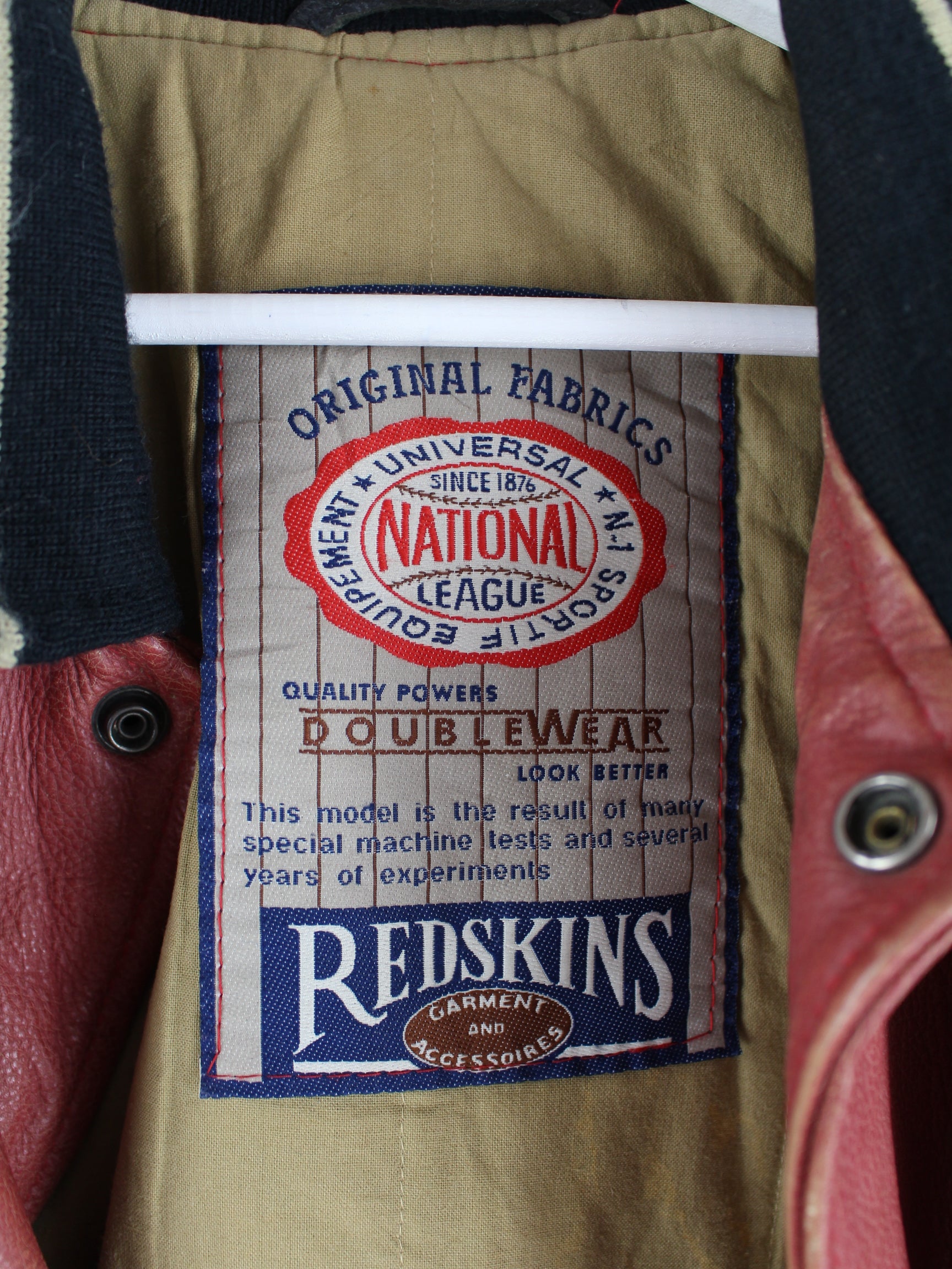 Jacket from the Redskins brand in size L from the 90's. It is made of leather and available in red.