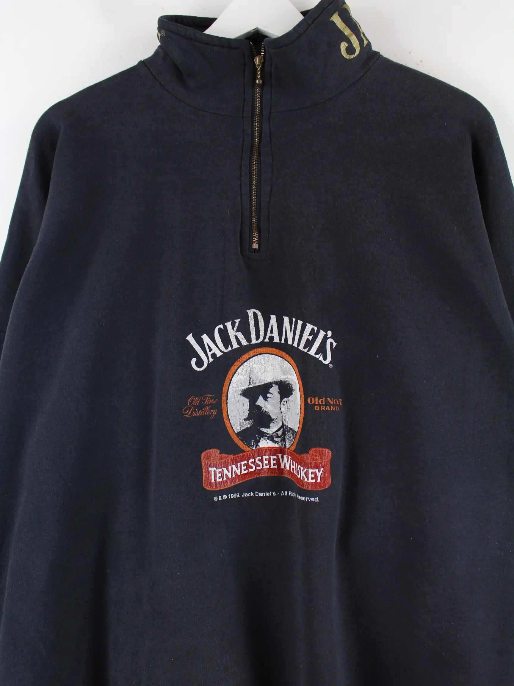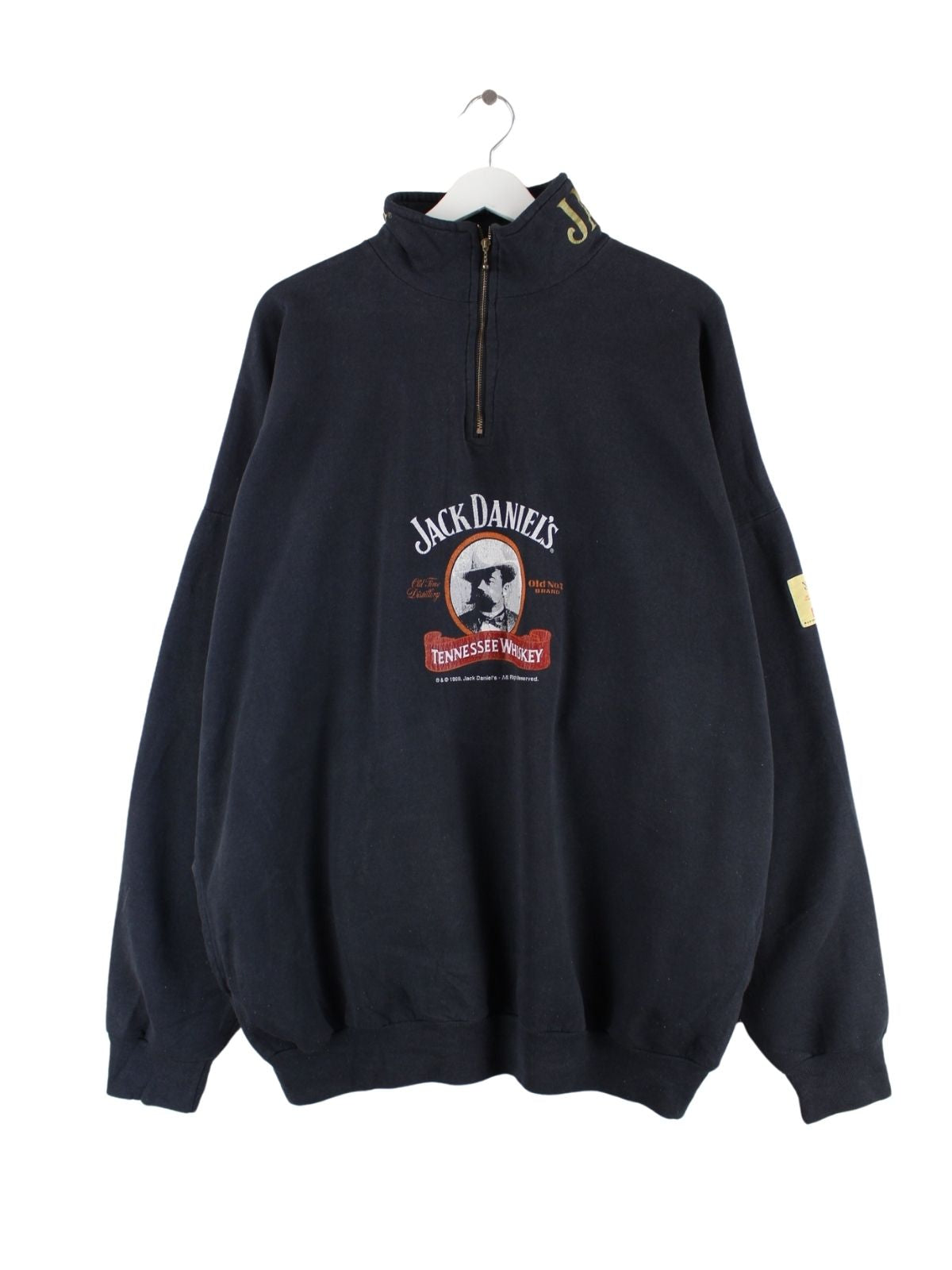 Vintage 90s Vintage Jack Daniels Print Half Zip Sweater Schwarz XXL