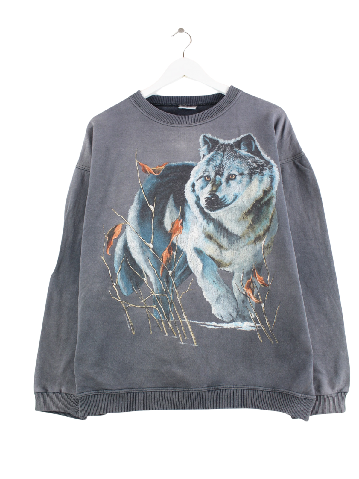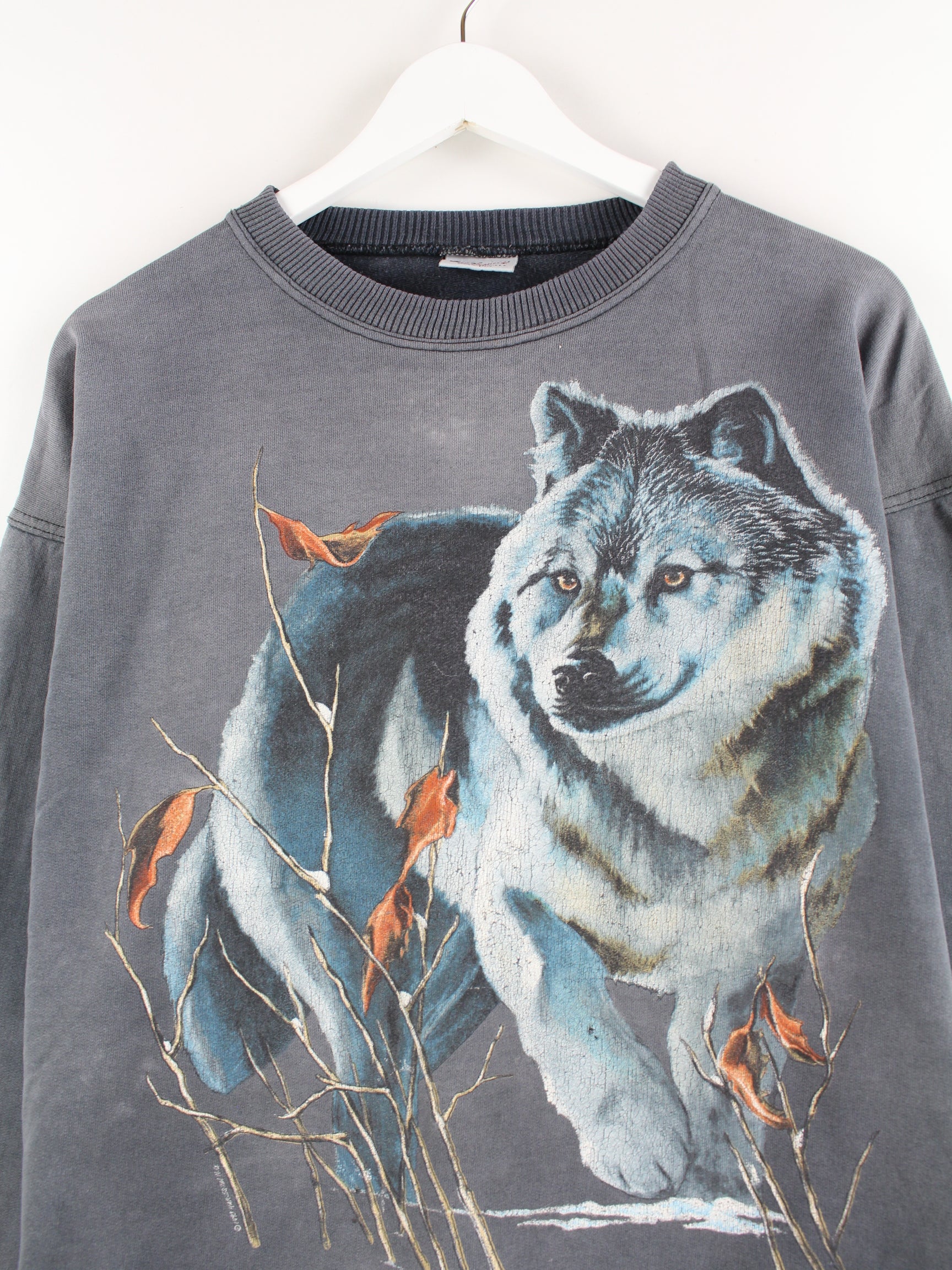 Vintage 90s Vintage Wolf Print Sweater Gray L