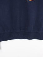 Vintage Sweater in Größe S. Er ist aus einer Baumwollmischung hergestellt und in Blau vorrätig. Mit chiquem State Print.