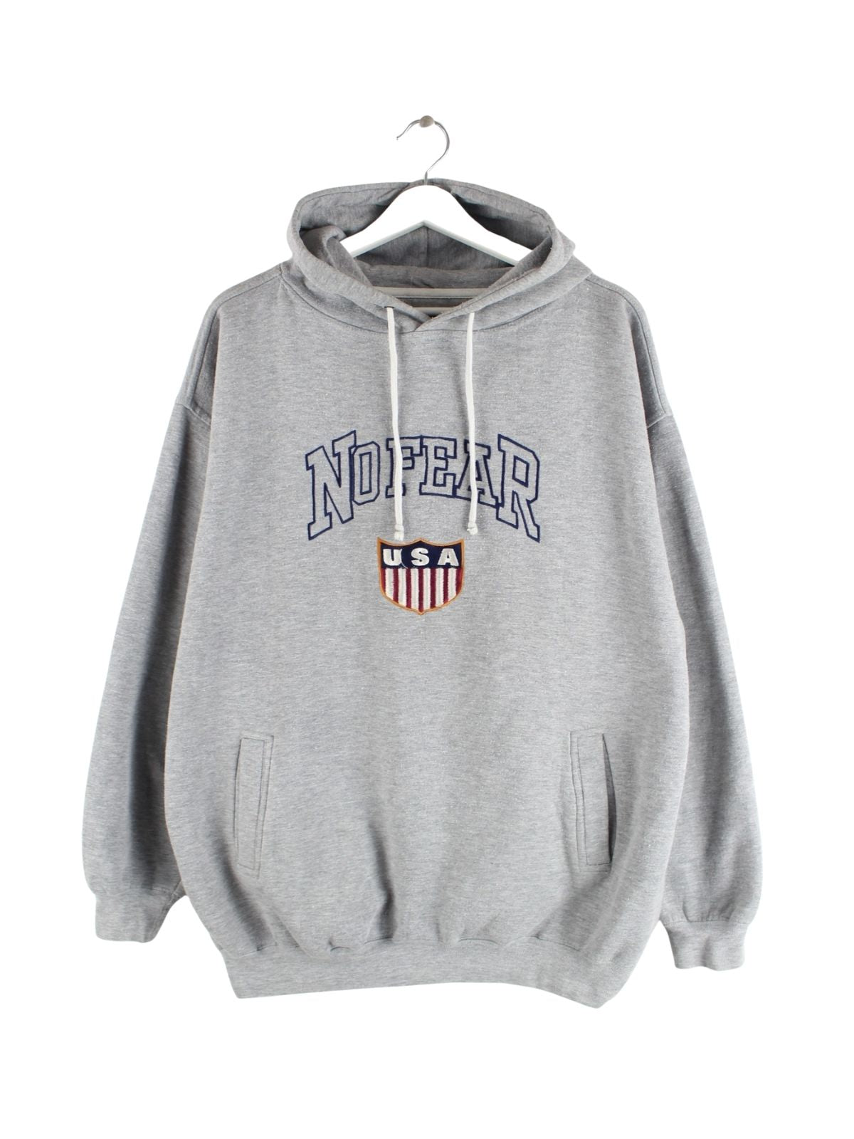 Grauer Vintage Hoodie in Größe L. Er ist aus einer Baumwollmischung gefertigt und in sehr gutem Zustand zu bekommen.