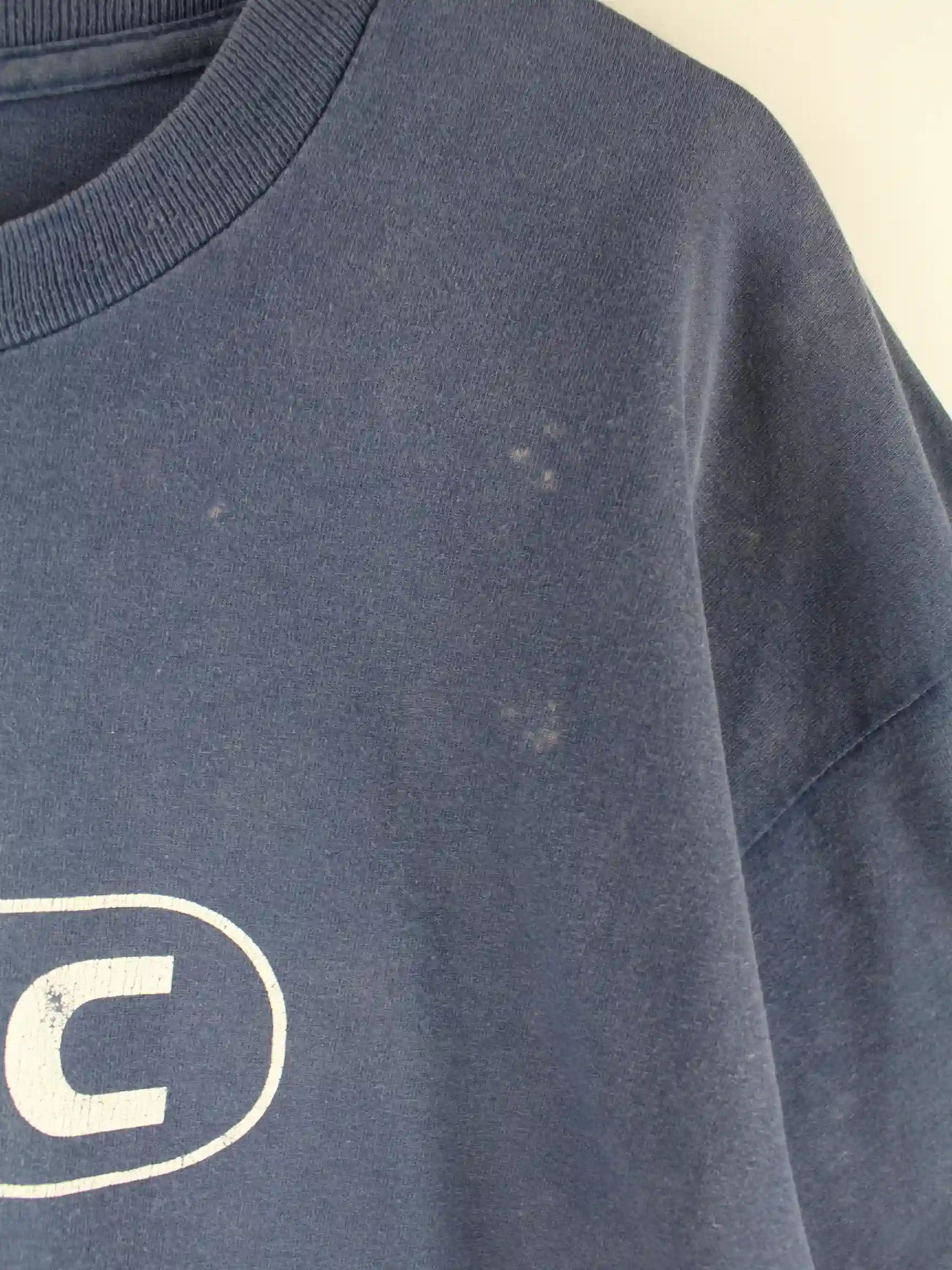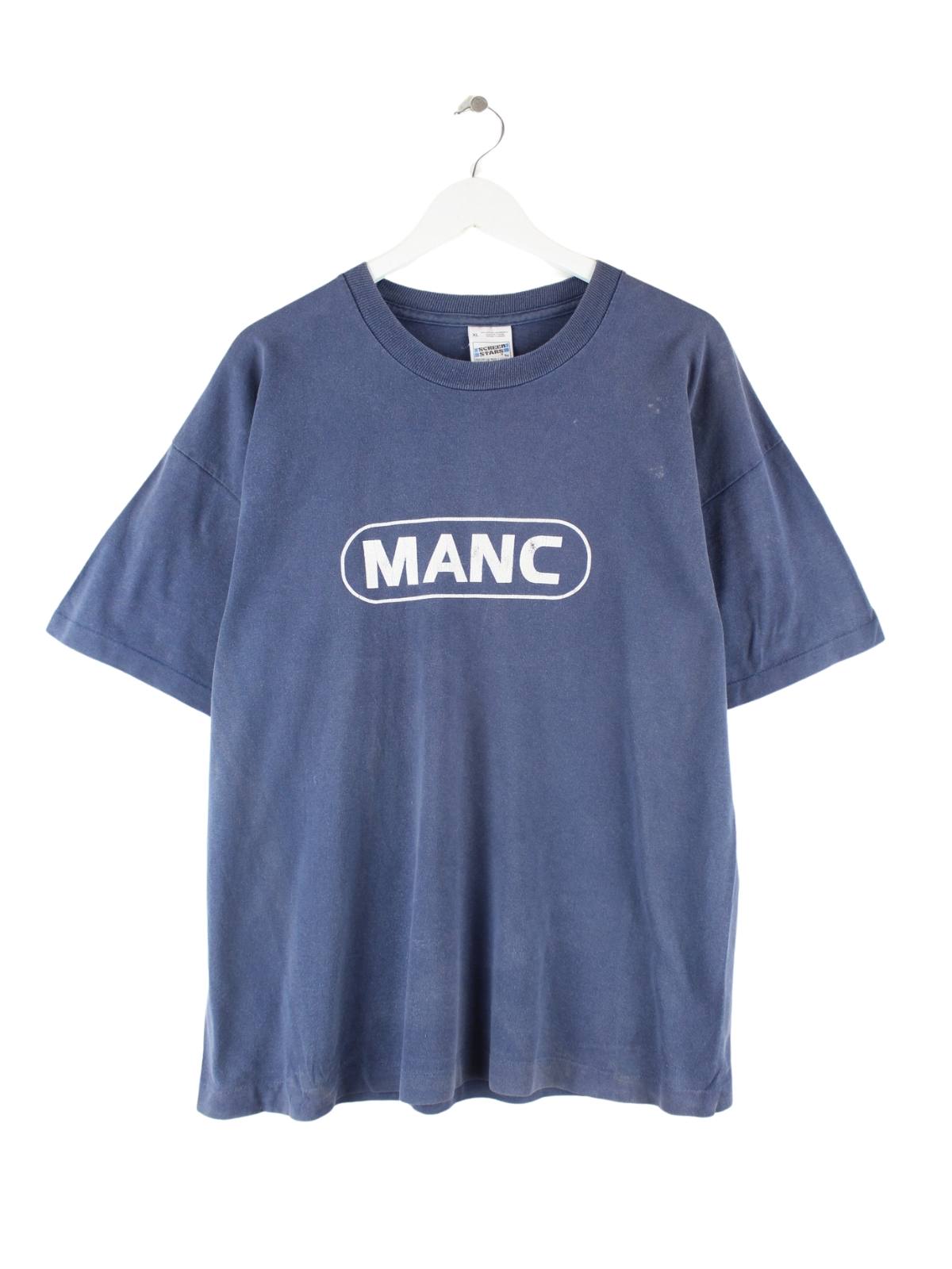 Fruit of the Loom 90s Vintage Manc Print Faded Single Stitch T-Shirt Blau XL