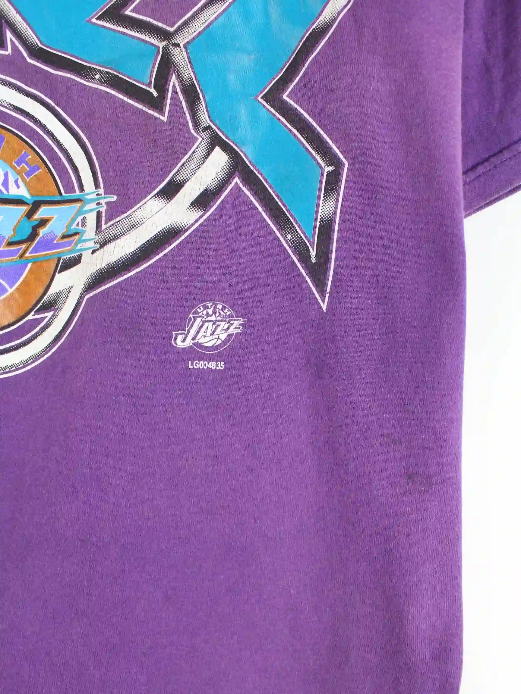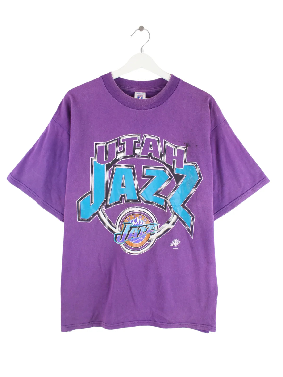 Logo 7 90s Vintage NBA Utah Jazz Print T-Shirt Lila XL