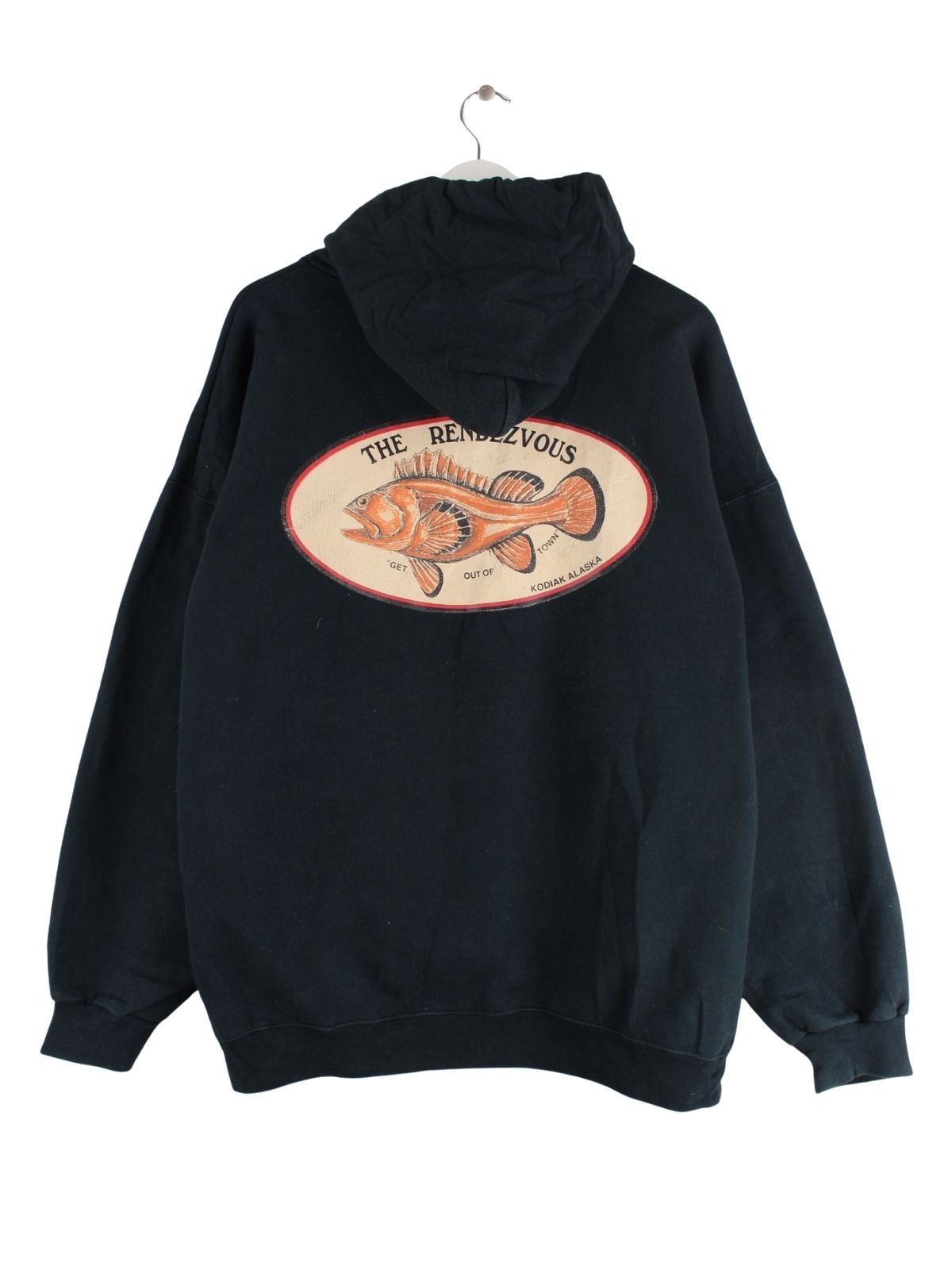 Hanes 90s Vintage Fish Print Hoodie Schwarz XL