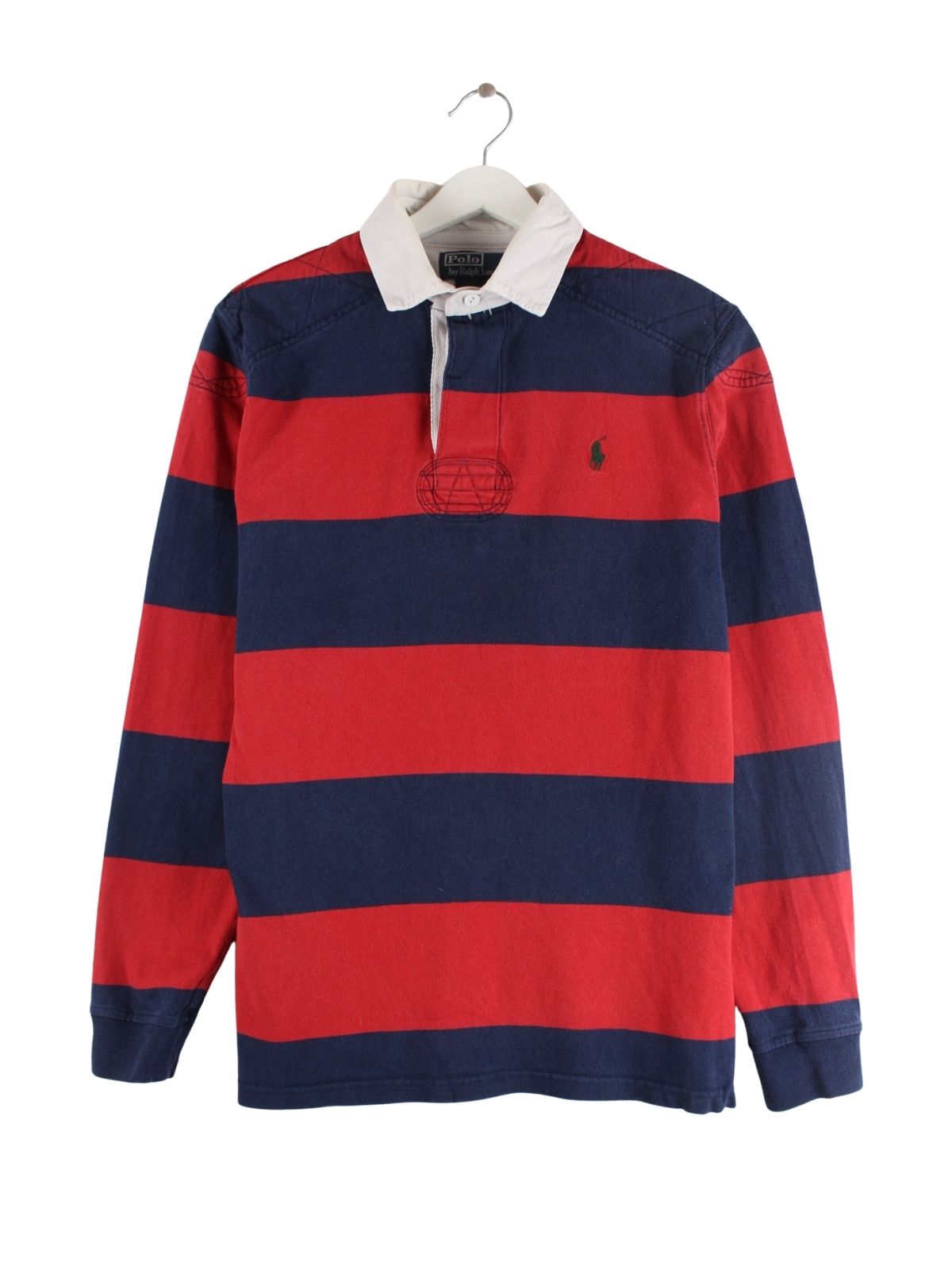 Ralph Lauren 00s Custom Fit Striped Langarm Polo Rot M