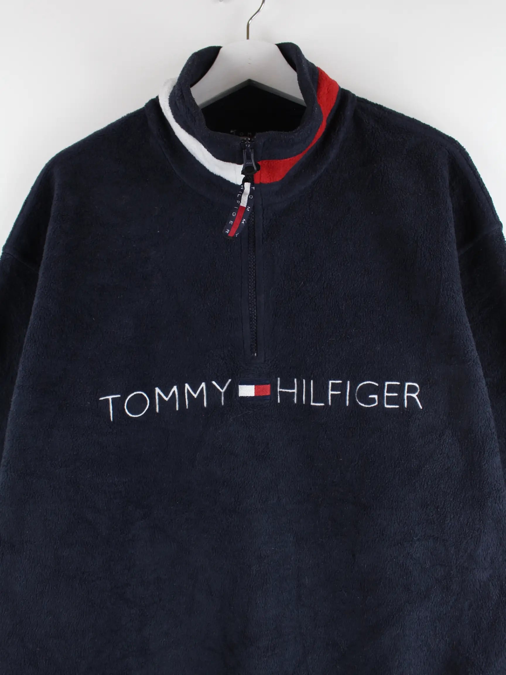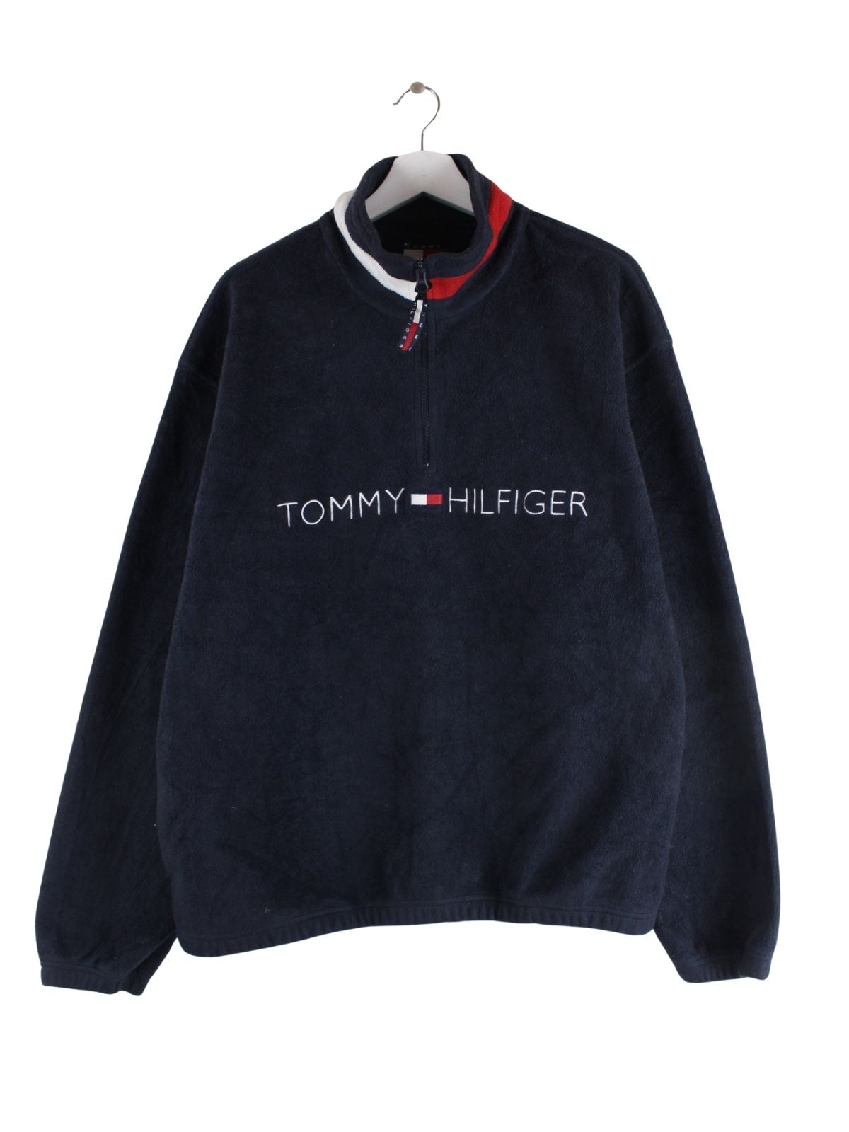 Tommy Hilfiger 90s Vintage Spellout Half Zip Fleece Sweater Blau L