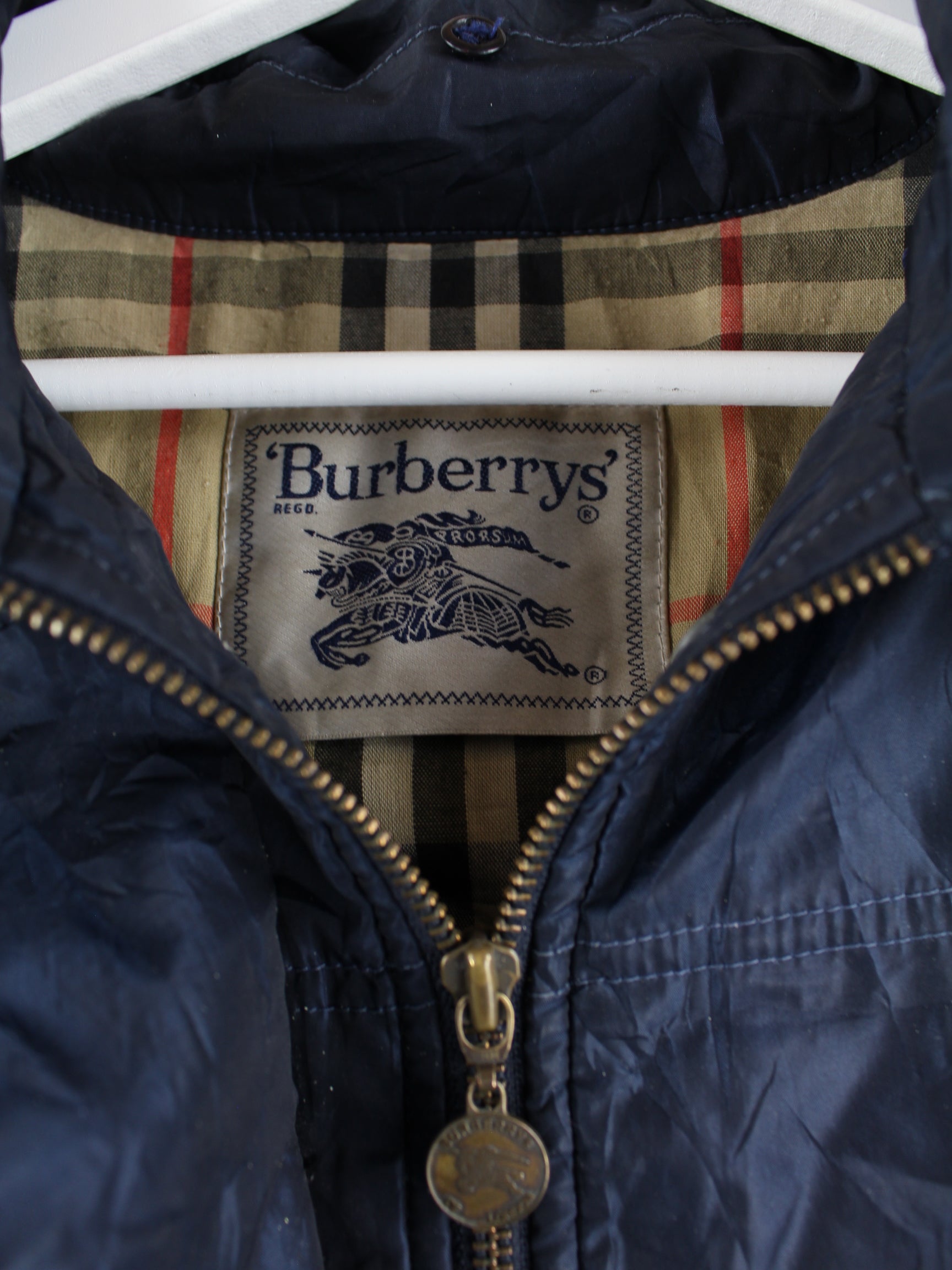 Blue jacket by Burberry from the 90's in size L. It is made of synthetic material. We would describe the condition as 'fine' (see pictures).
