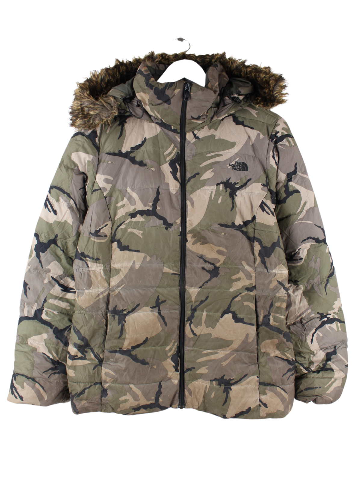 The North Face Damen Camouflage Daunen / Puffer Jacke Grün L