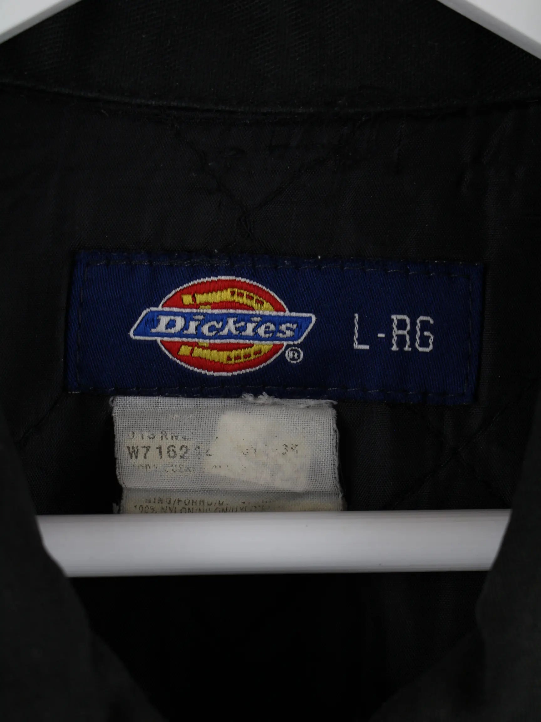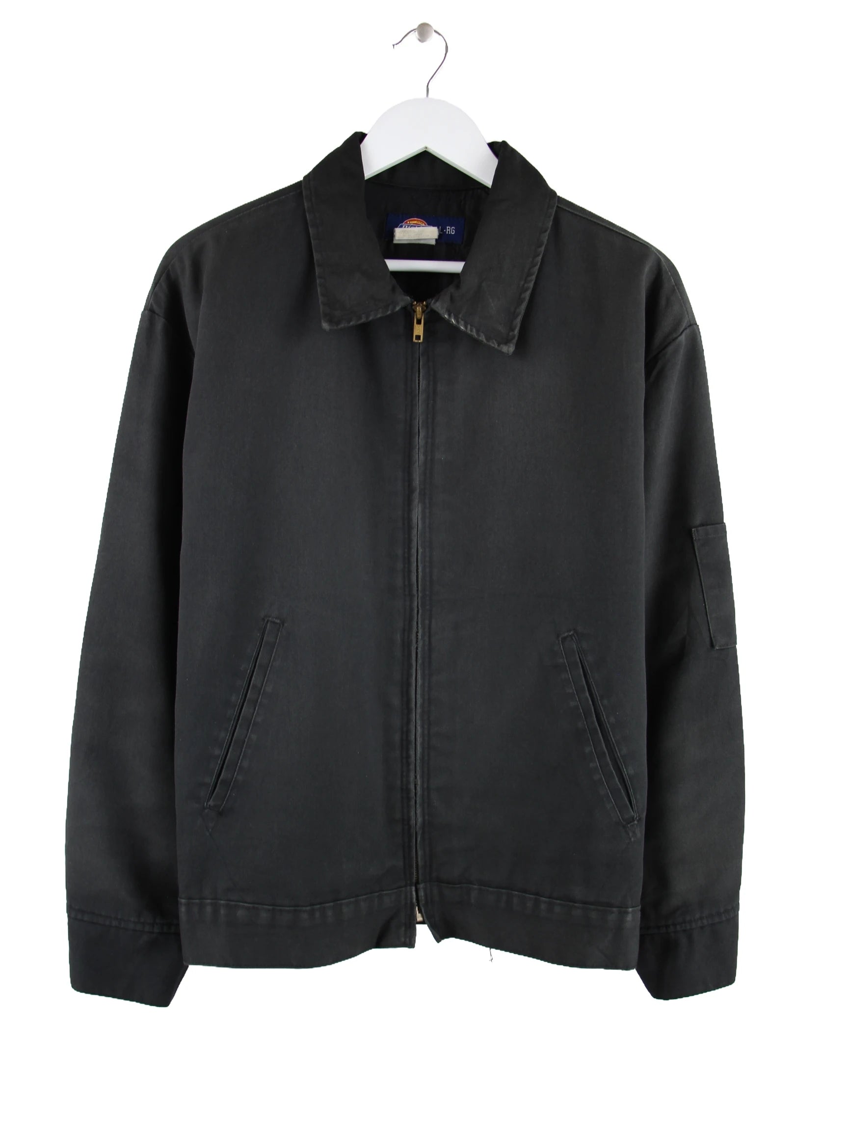 Schwarze Jacke der Brand Dickies in Größe L. Sie ist aus Synthetik gefertigt und in gutem Zustand bei uns zu bekommen.