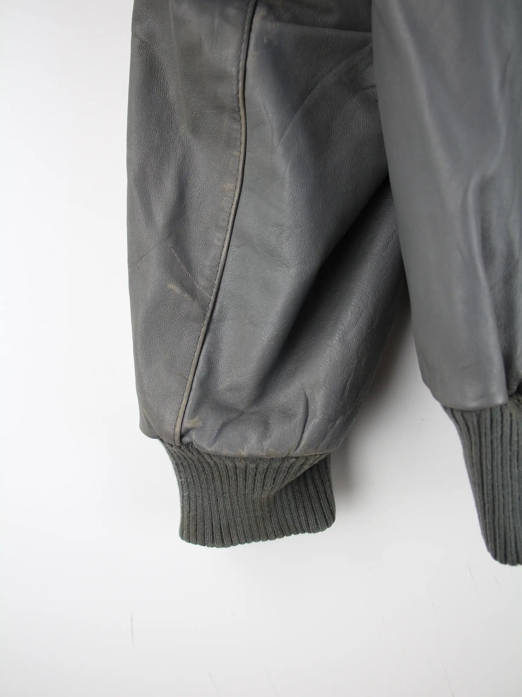 Graue Vintage Jacke in Größe S. Sie ist aus Leder gemacht. Den Zustand würden wir als 'In Ordnung' bezeichnen (vergl. Bilder).