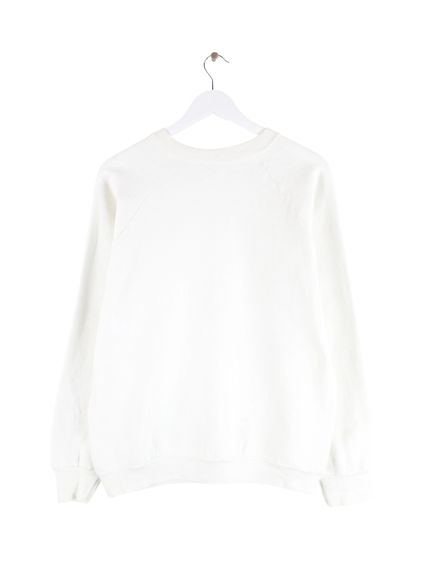 Weißer Sweater aus dem Hause Fruit of the Loom aus den 90'ern in Größe L. Er ist aus einer Baumwollmischung hergestellt und in gutem Zustand lieferbar.