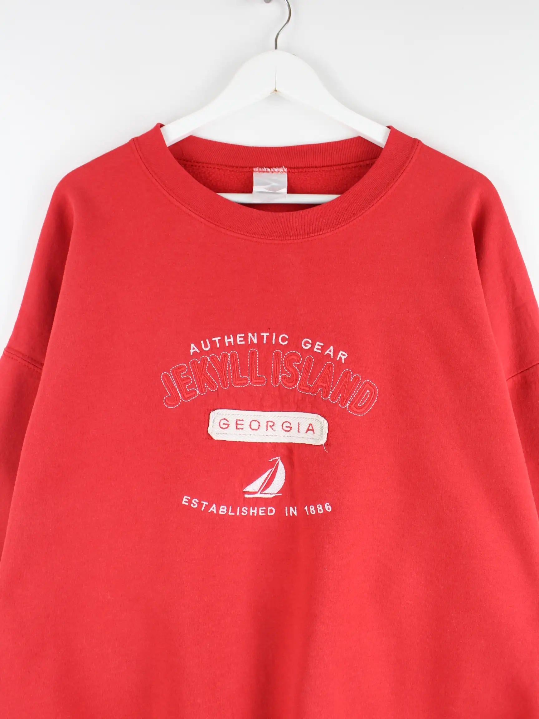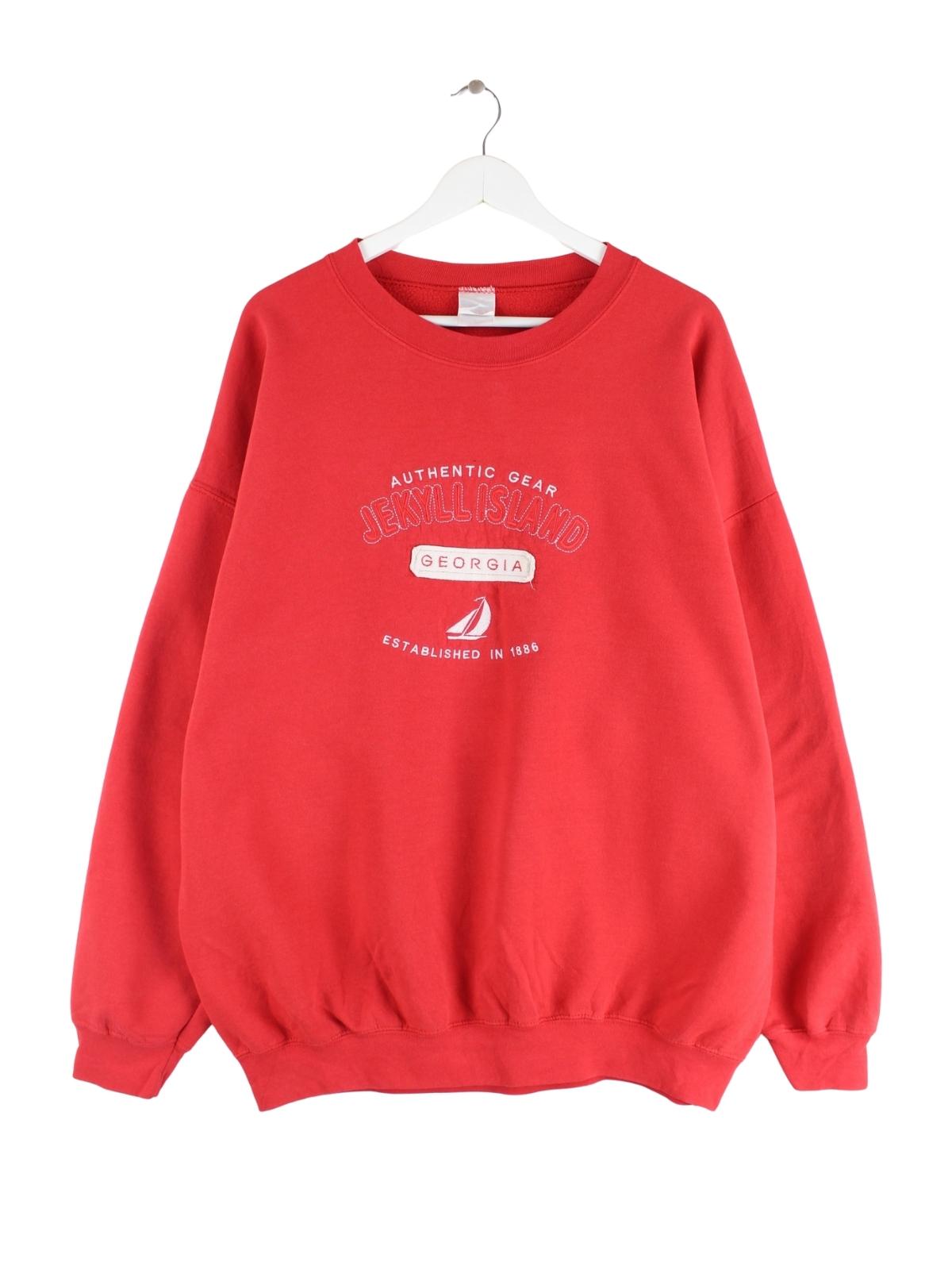 Sweater aus dem Hause Gildan in Größe XL. Er ist aus einer Baumwollmischung hergestellt und in Rot zu bekommen.