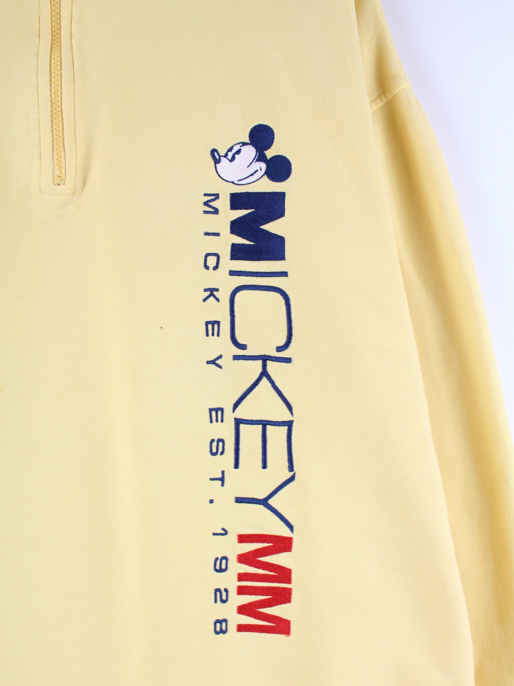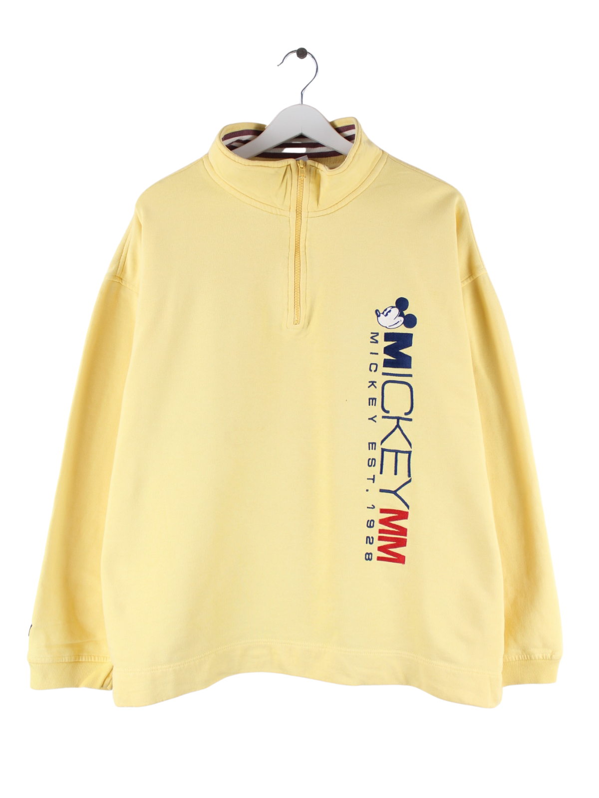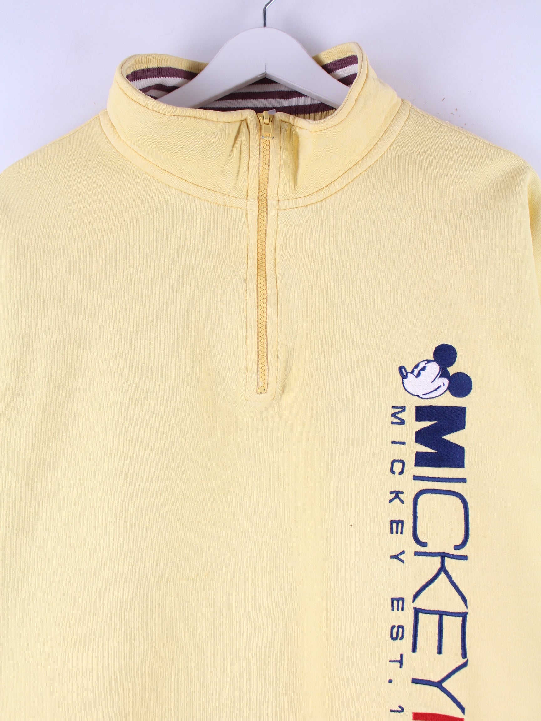 Disney 90s Vintage Mickey Embroidered Half Zip Sweater Gelb L