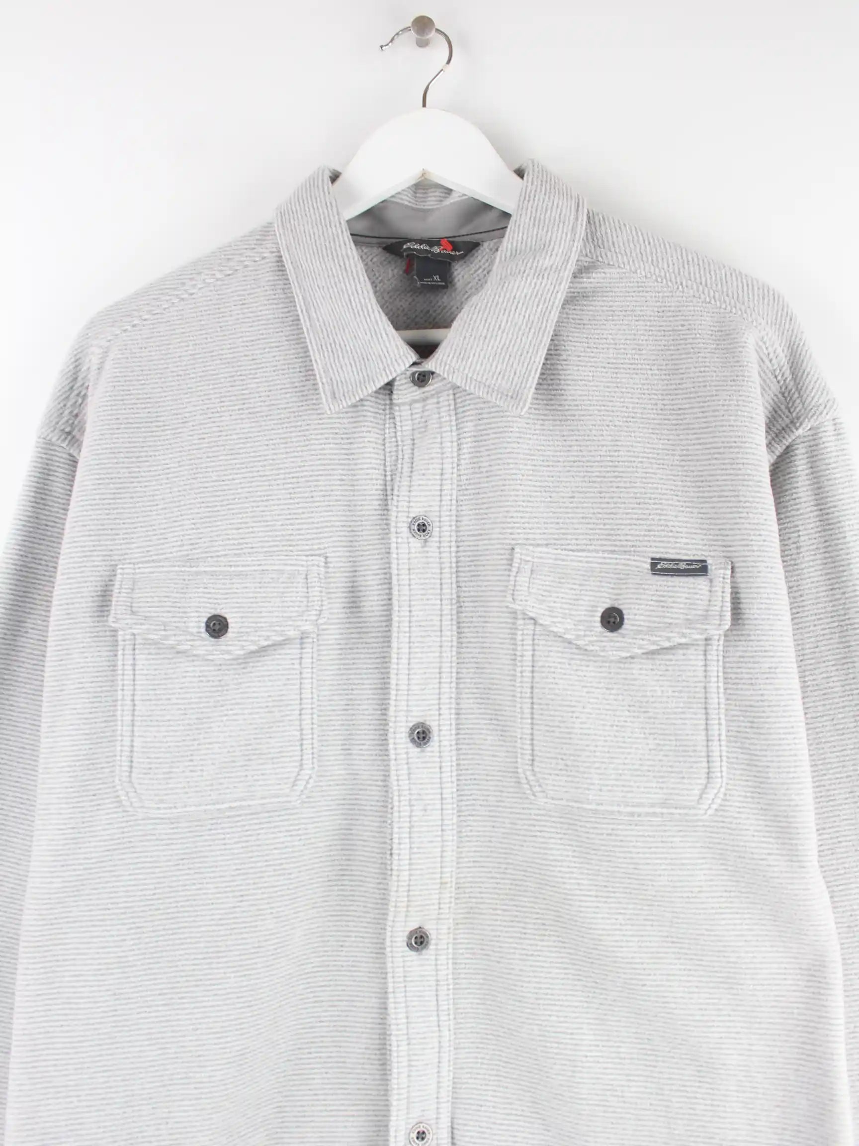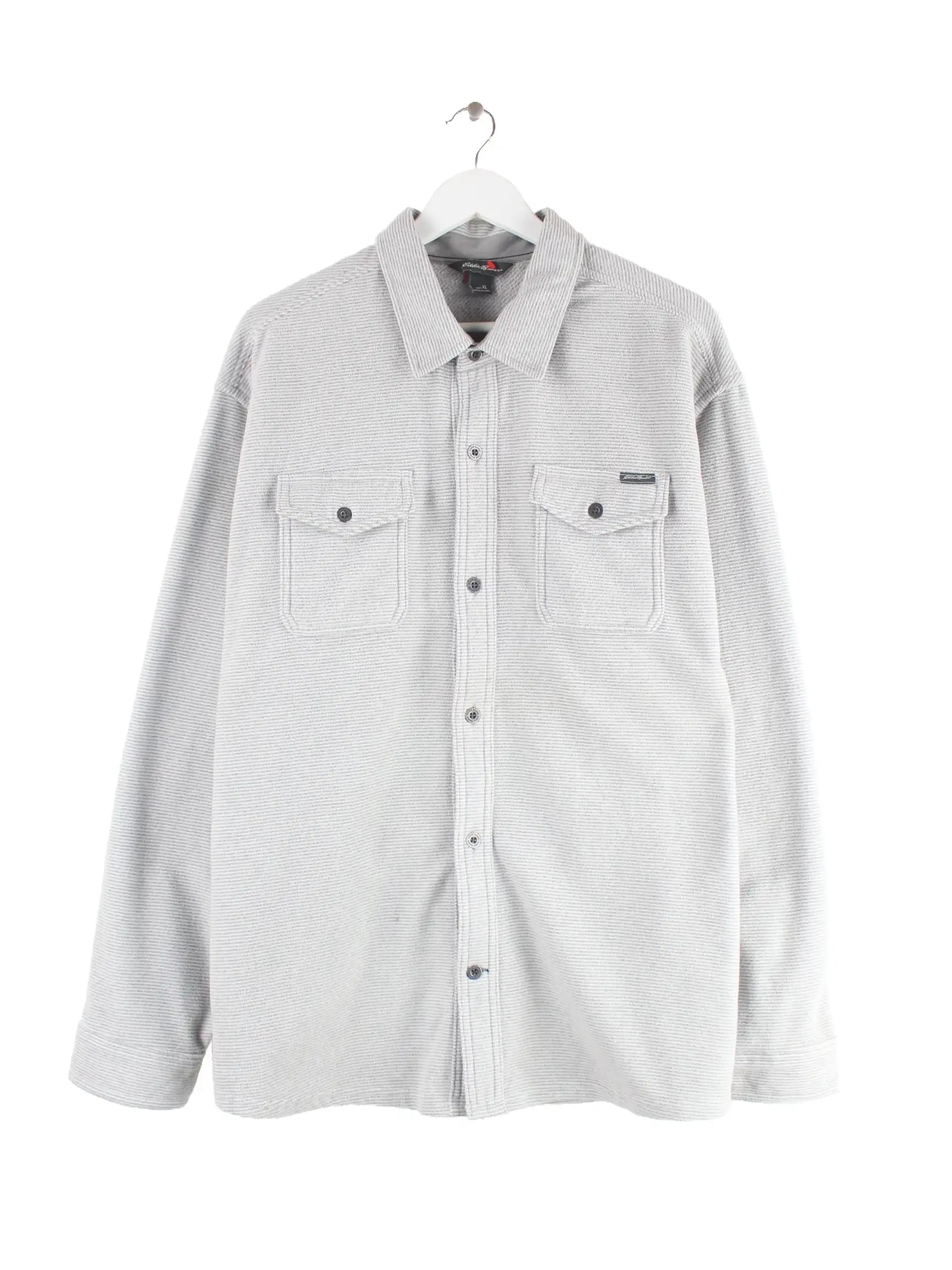 Freizeit Hemd aus dem Hause Eddie Bauer in Größe XL. Es ist aus Synthetik gefertigt und in Grau zu haben.