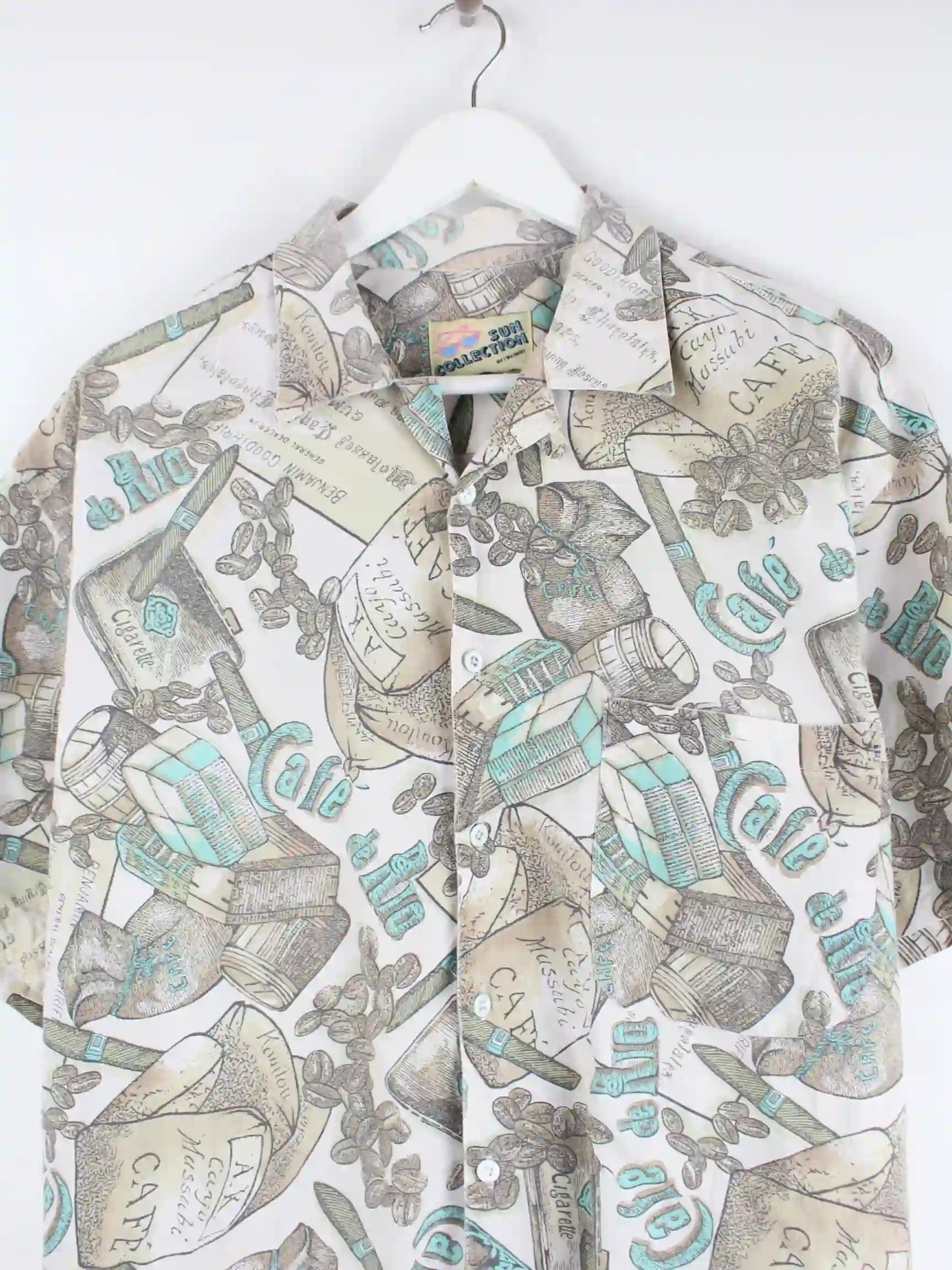 Weißes Vintage Freizeit Hemd aus den 80'ern in Größe L. Es ist aus Baumwolle gemacht und in gutem Zustand vorrätig.