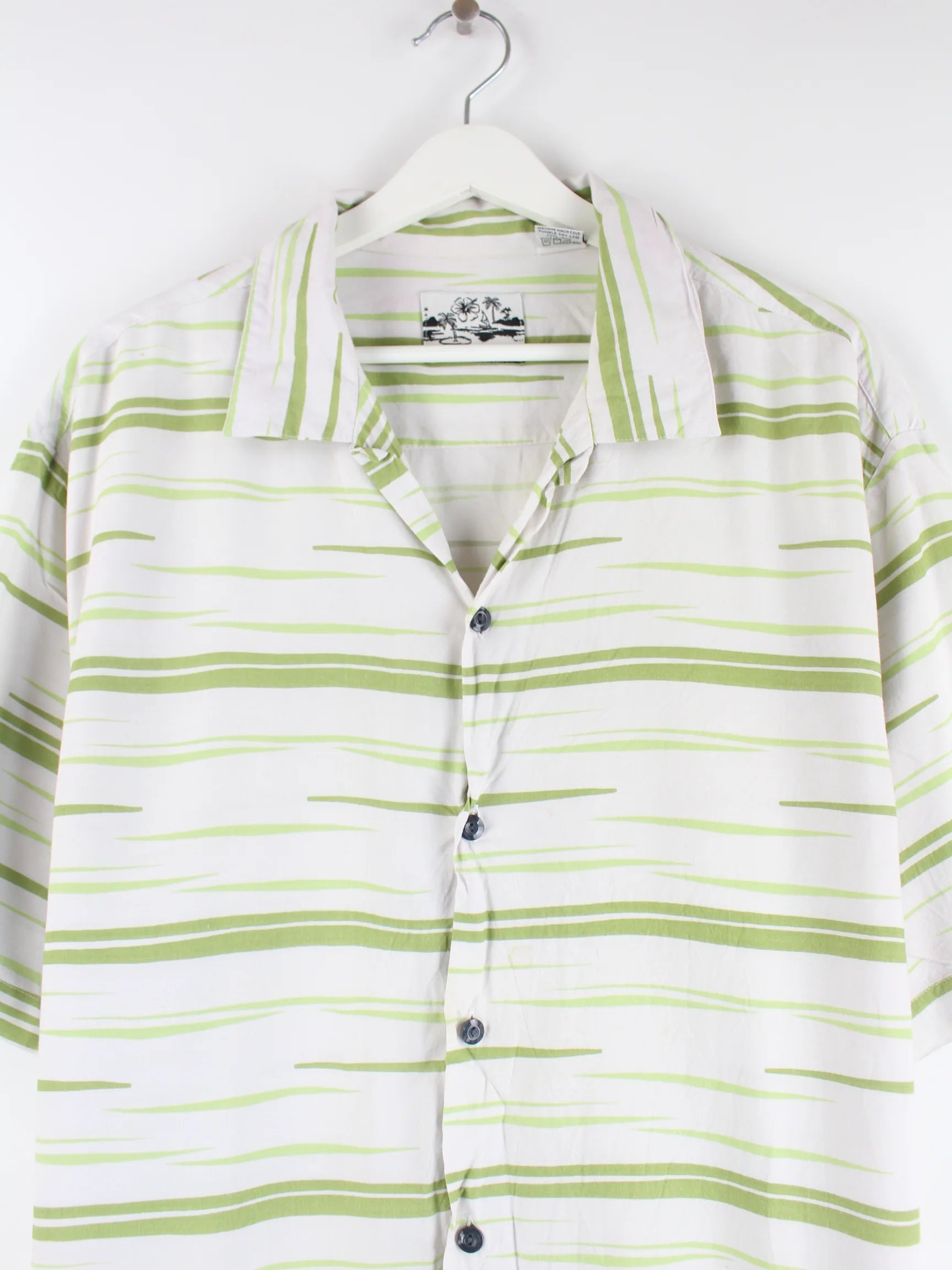 Vintage Freizeit Hemd in Größe L aus den 90'ern. Es ist aus einer Synthetikmischung gemacht und in Weiß vorrätig.