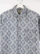 Vintage Crazy Pattern Freizeit Hemd in Größe M. Es ist aus Baumwolle gefertigt und in Grau lieferbar.