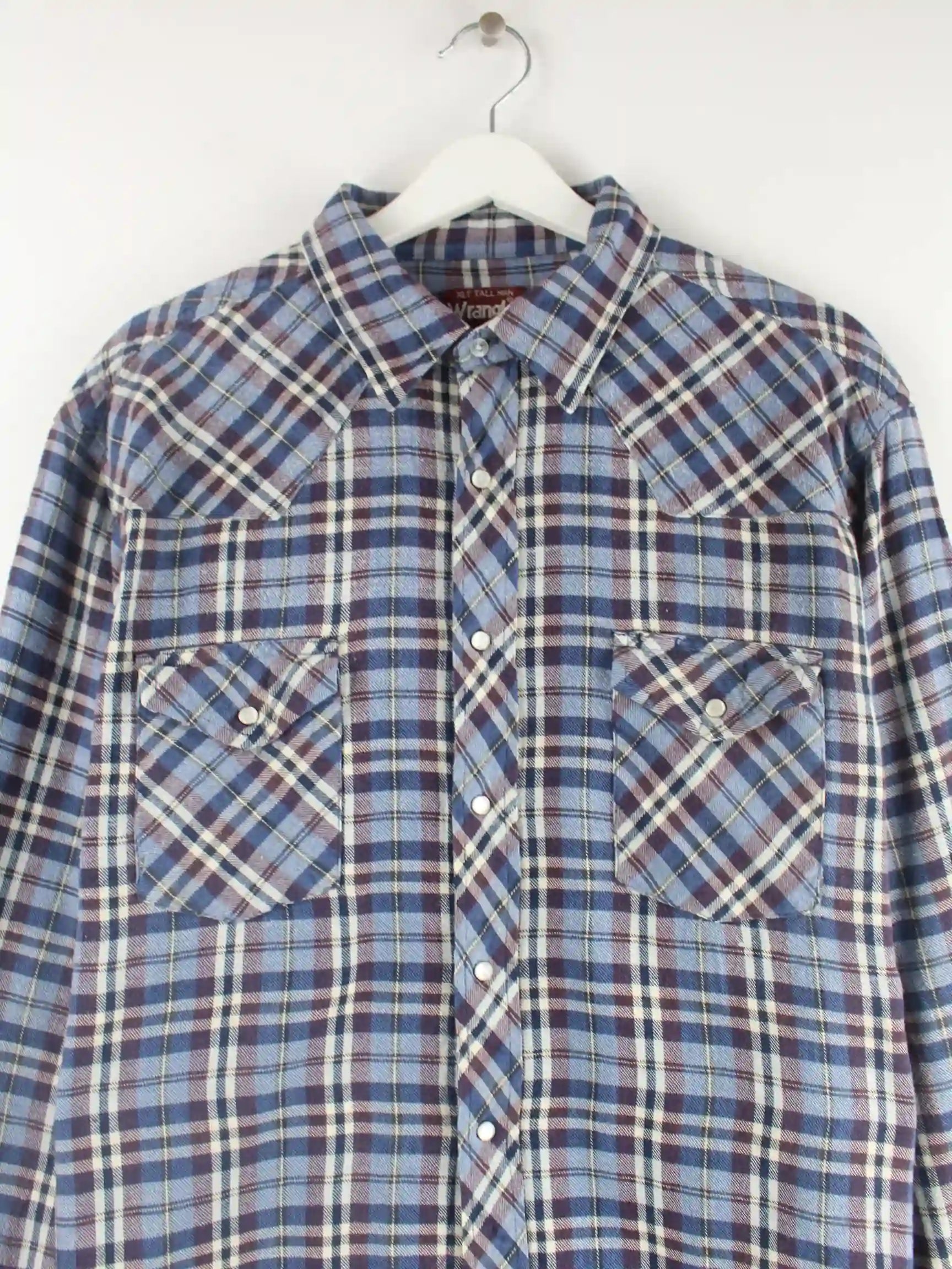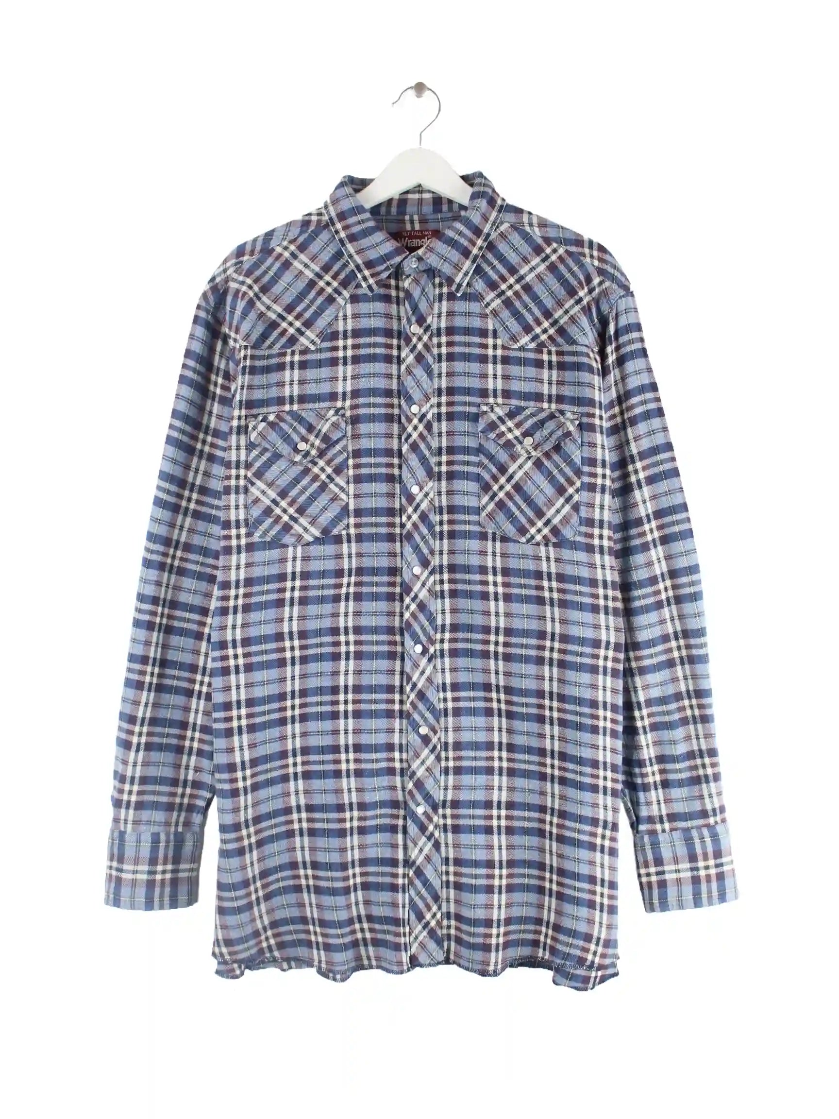 Freizeit Hemd vom Brand Wrangler in Größe XXL aus den 90'ern. Es ist aus Baumwolle gefertigt und in Blau im Bestand.