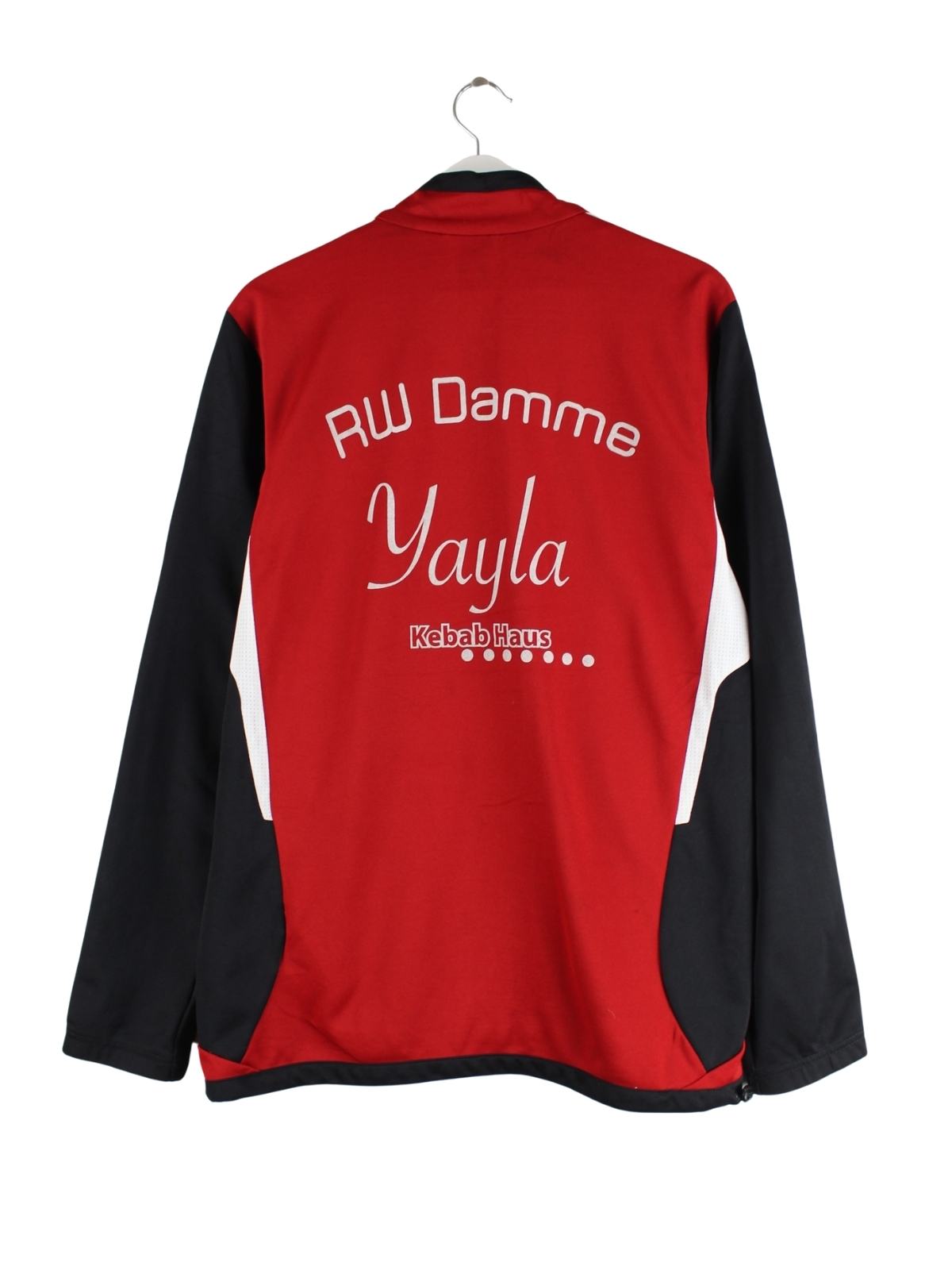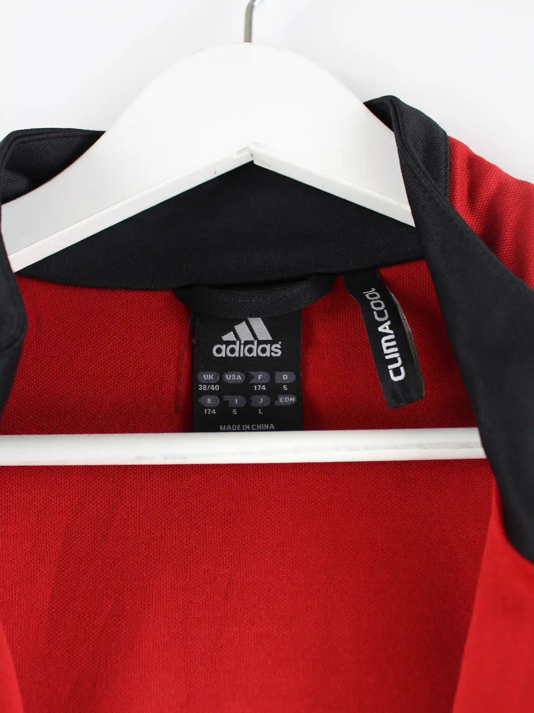 Trainingsjacke vom Brand Adidas in Größe L. Sie ist aus Synthetik angefertigt und in Rot im Bestand. Mit schickem 3-Stripes Print.
