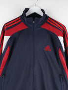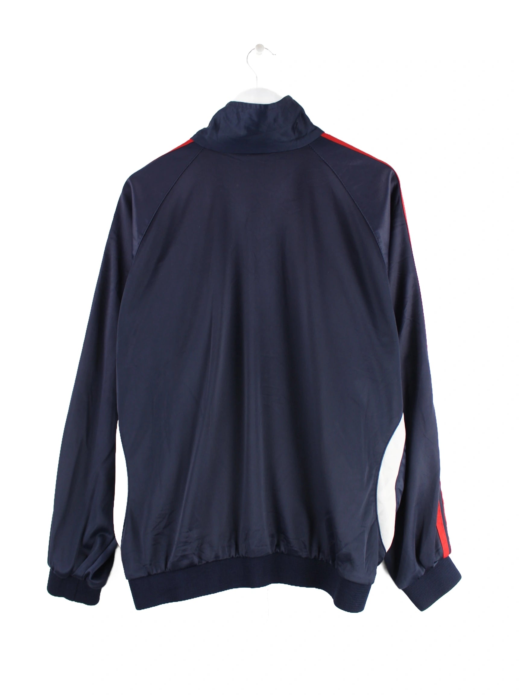 Blaue Trainingsjacke der Brand Adidas in Größe XXL. Sie ist aus Synthetik gefertigt. Den Zustand würden wir als 'In Ordnung' bezeichnen (vergl. Bilder).