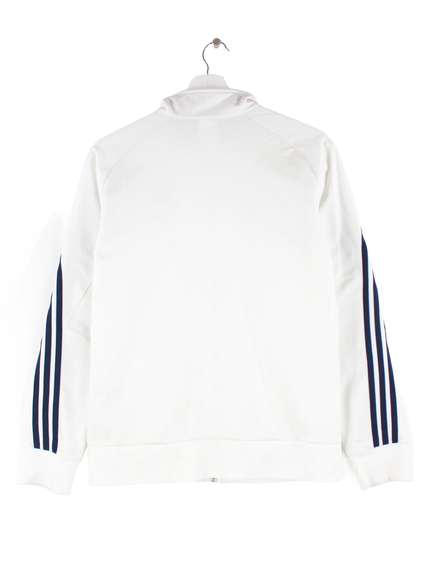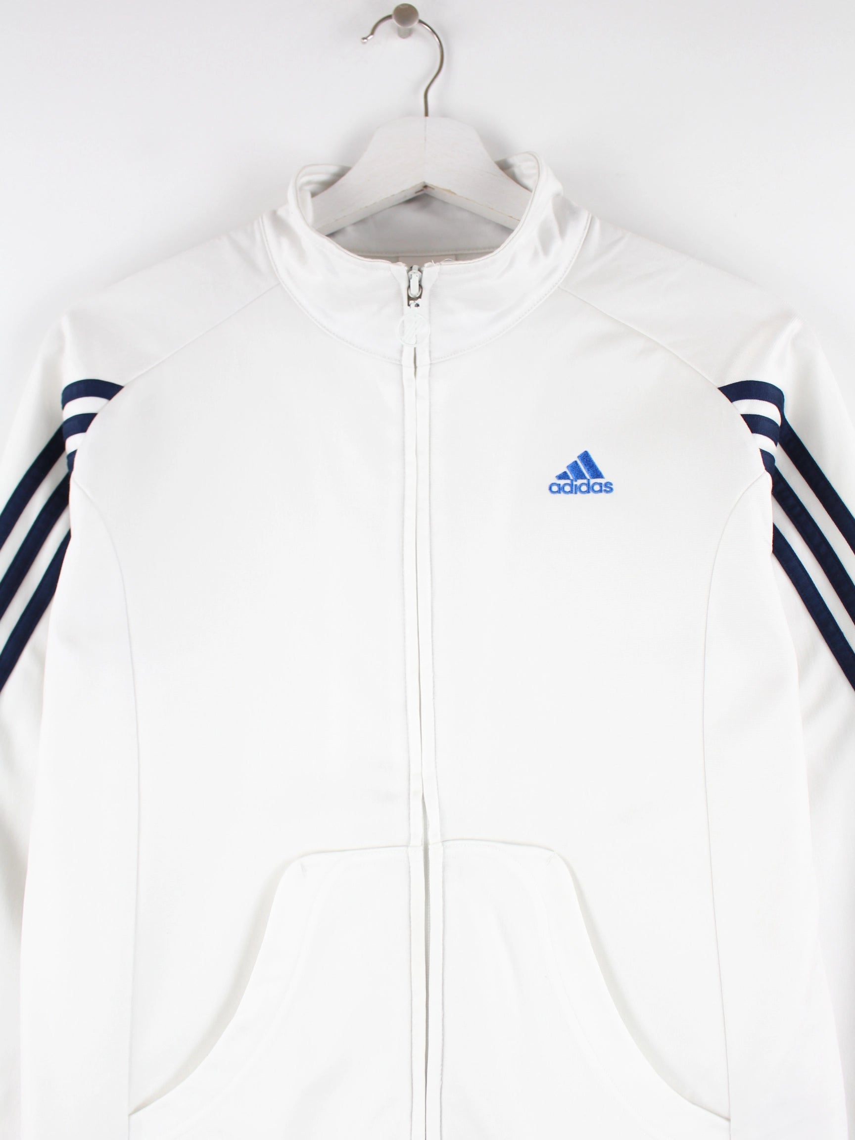Weiße Trainingsjacke der Marke Adidas in Größe L. Sie ist aus Synthetik gefertigt und in gutem Zustand im Angebot.