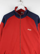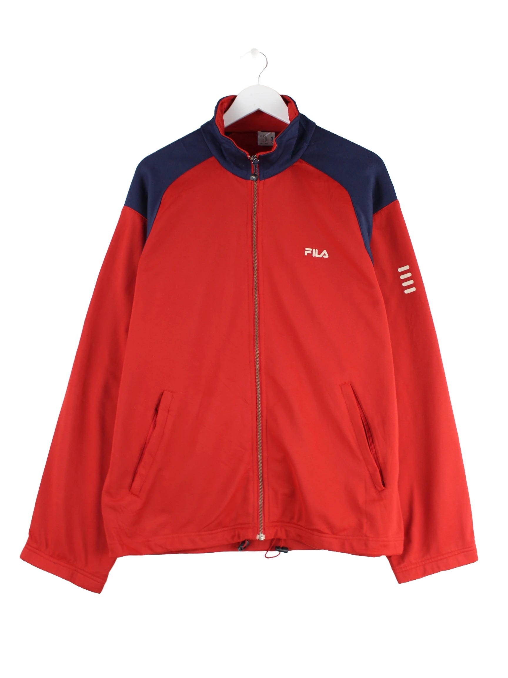 Rote Trainingsjacke vom Brand Fila in Größe M. Sie ist aus Synthetik und in gutem Zustand zu haben.
