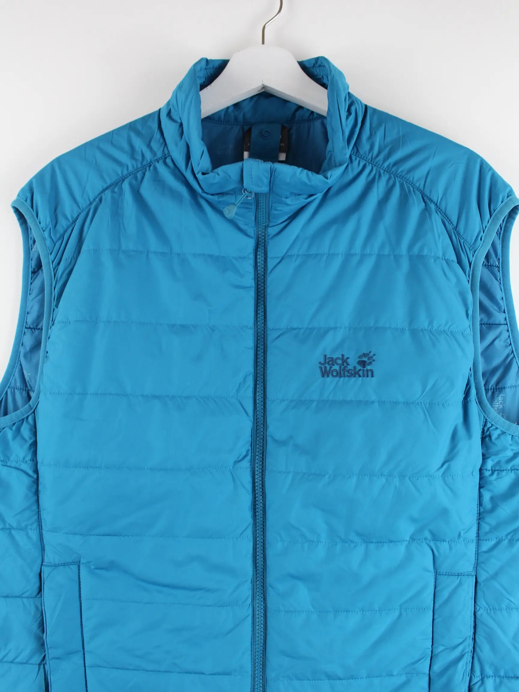 Blaue Weste des Labels Jack Wolfskin in Größe L. Sie ist aus Synthetik angefertigt und in sehr gutem Zustand im Angebot.