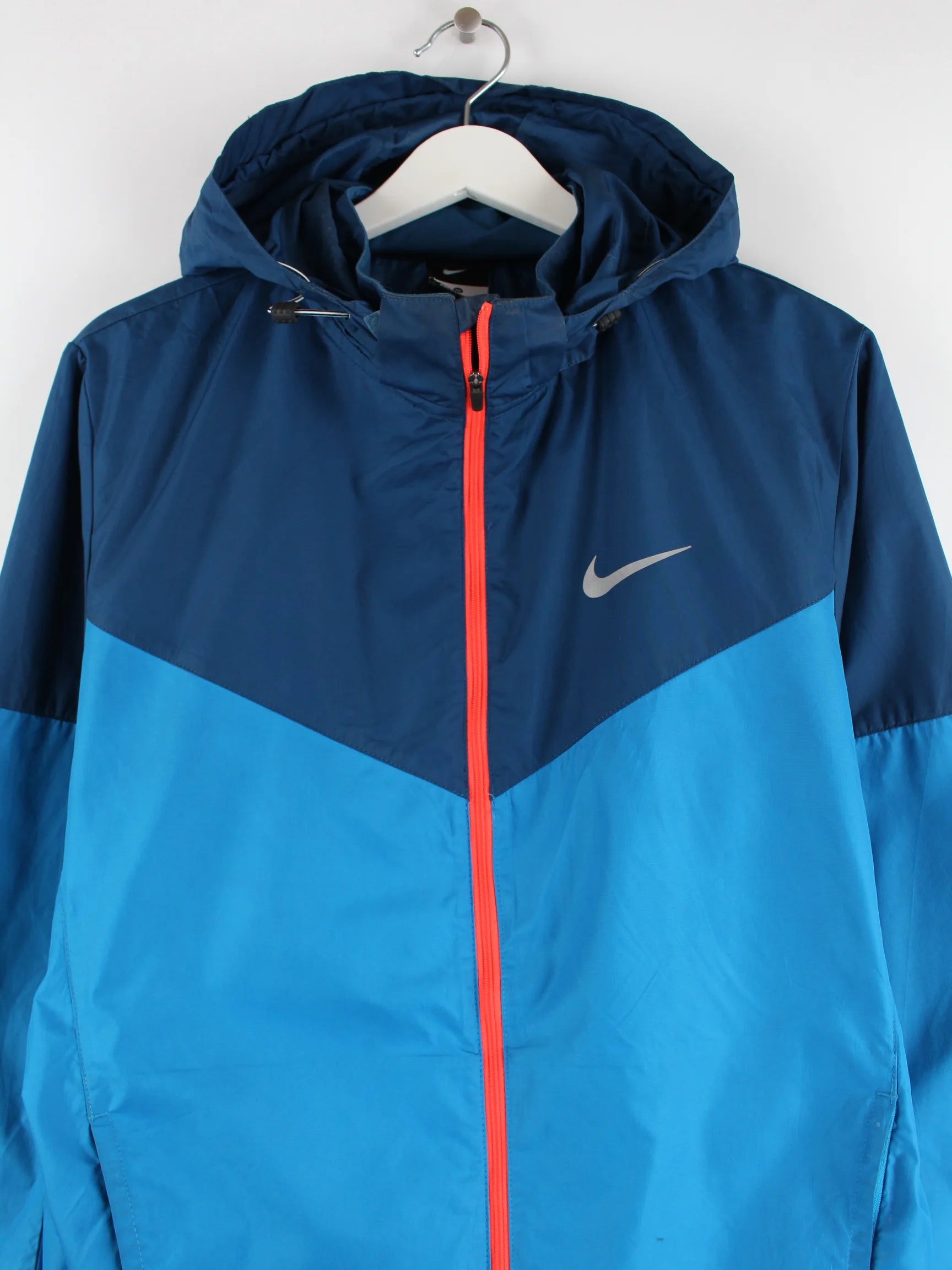 Blaue Leichte Jacke vom Brand Nike in Größe M. Sie ist aus Synthetik hergestellt und in gutem Zustand bei uns vorrätig.