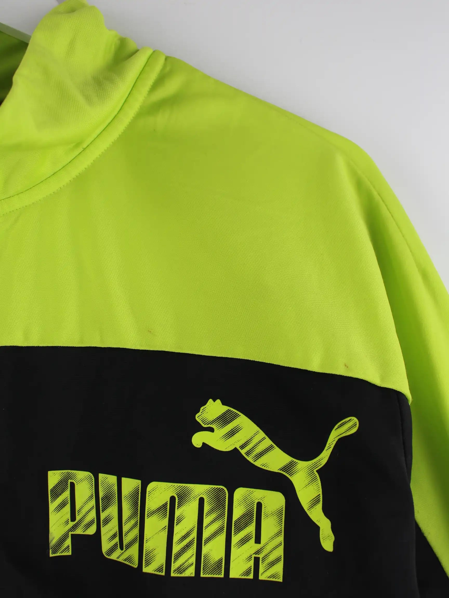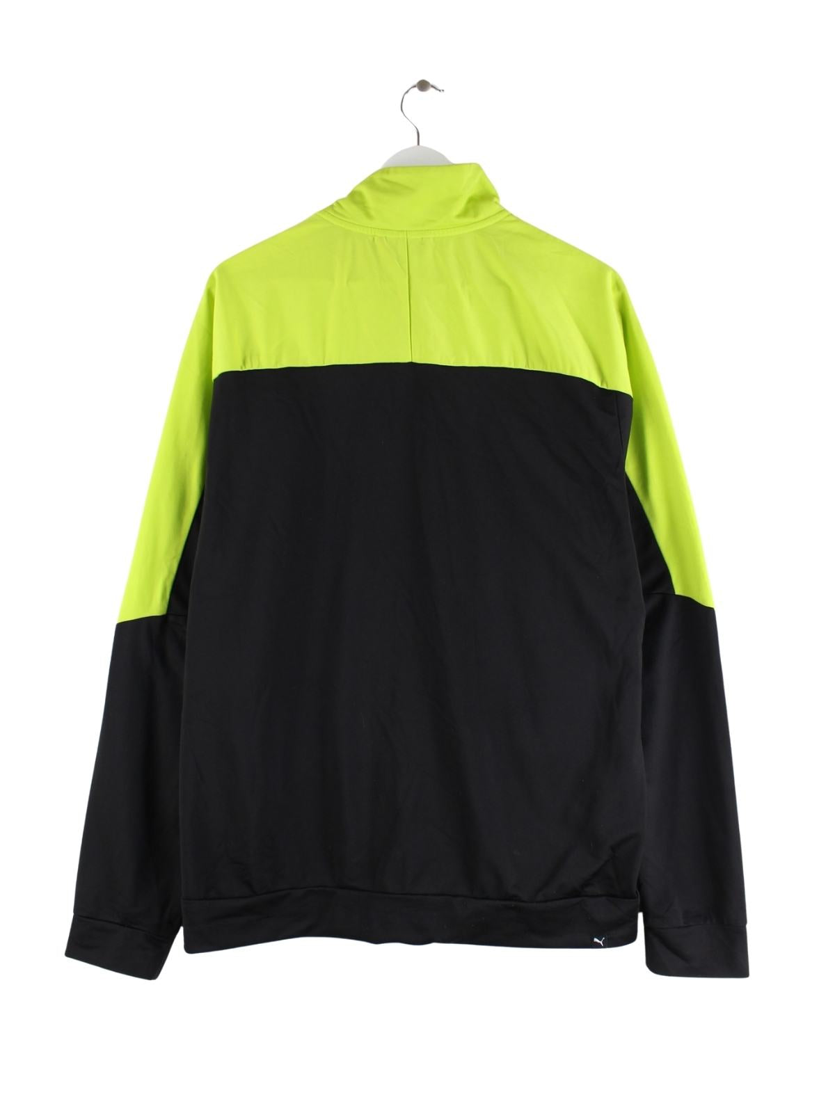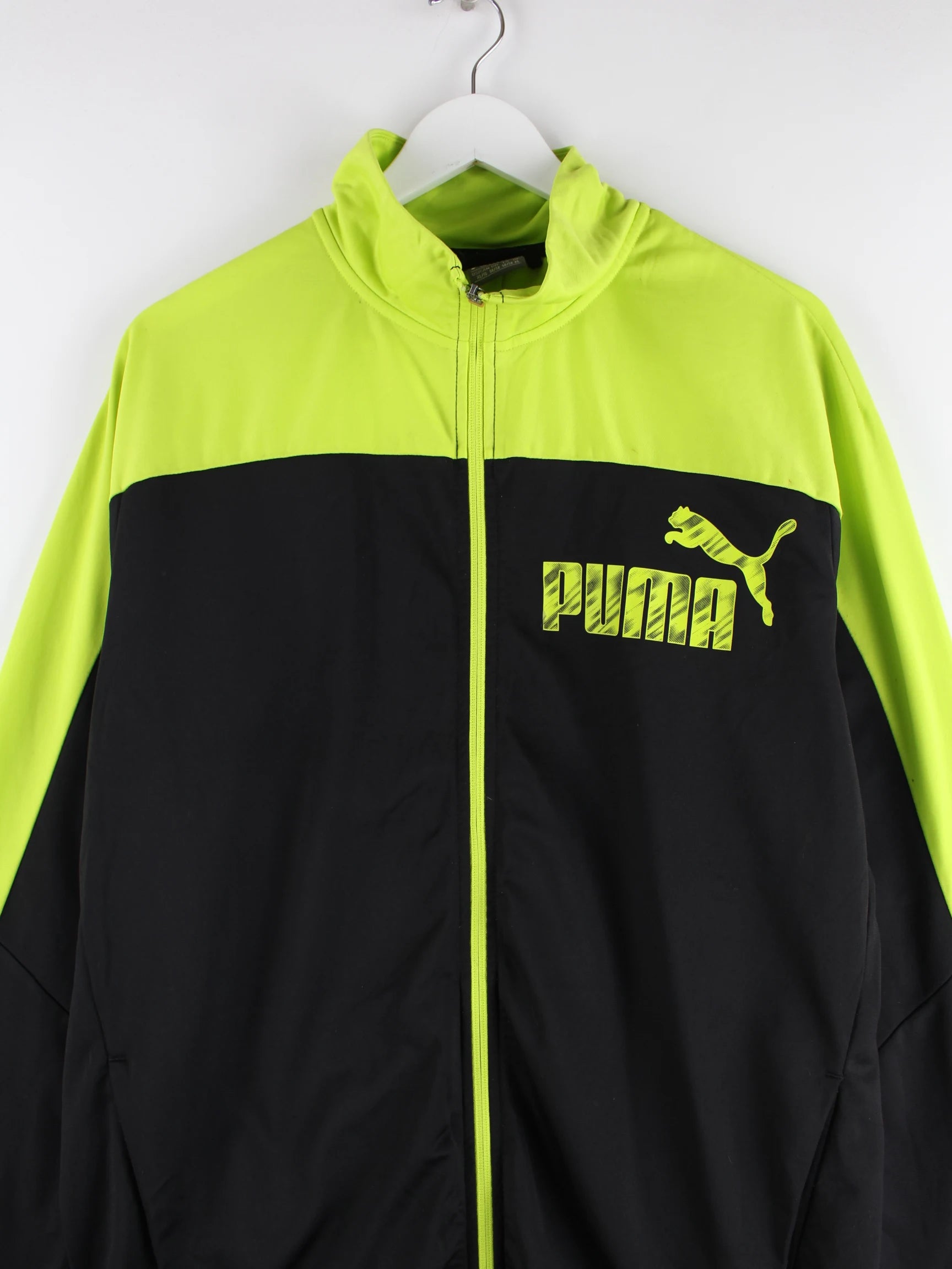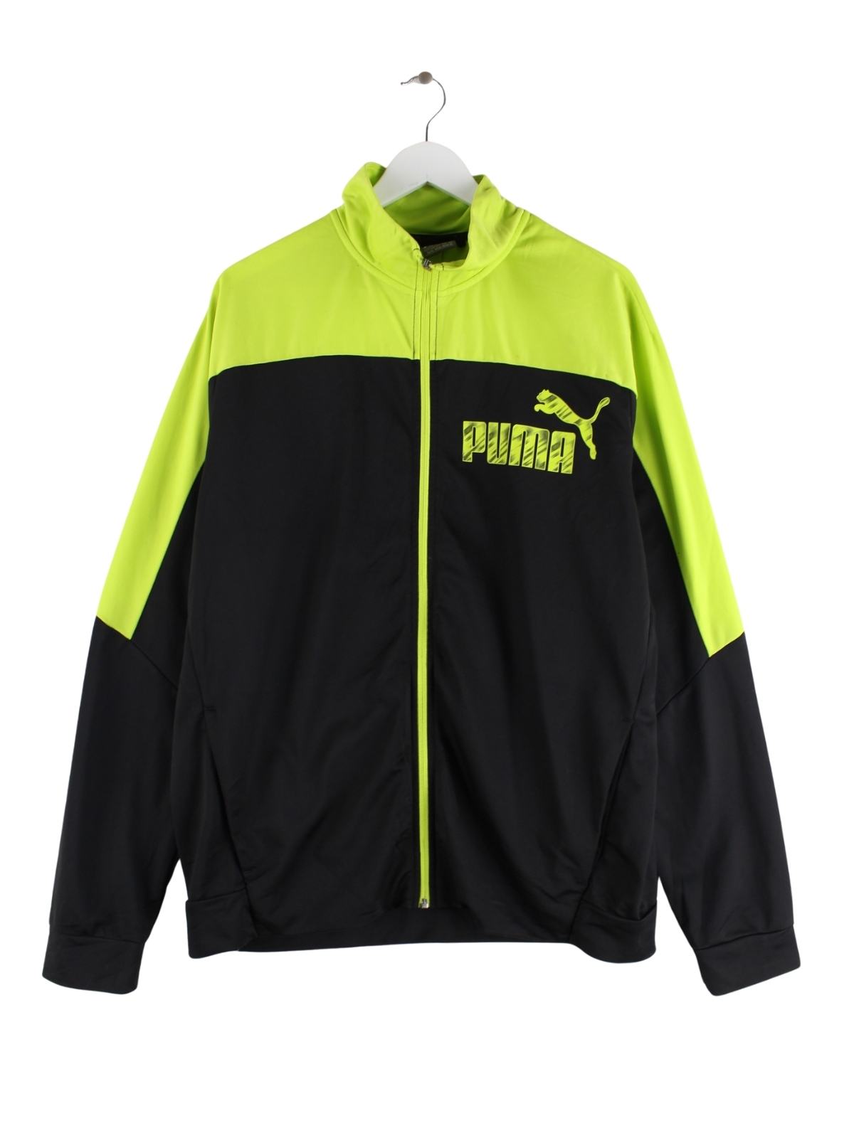 Trainingsjacke der Marke Puma in Größe XL. Sie ist aus Synthetik angefertigt und in Schwarz bei uns vorrätig. Mit schickem Print.