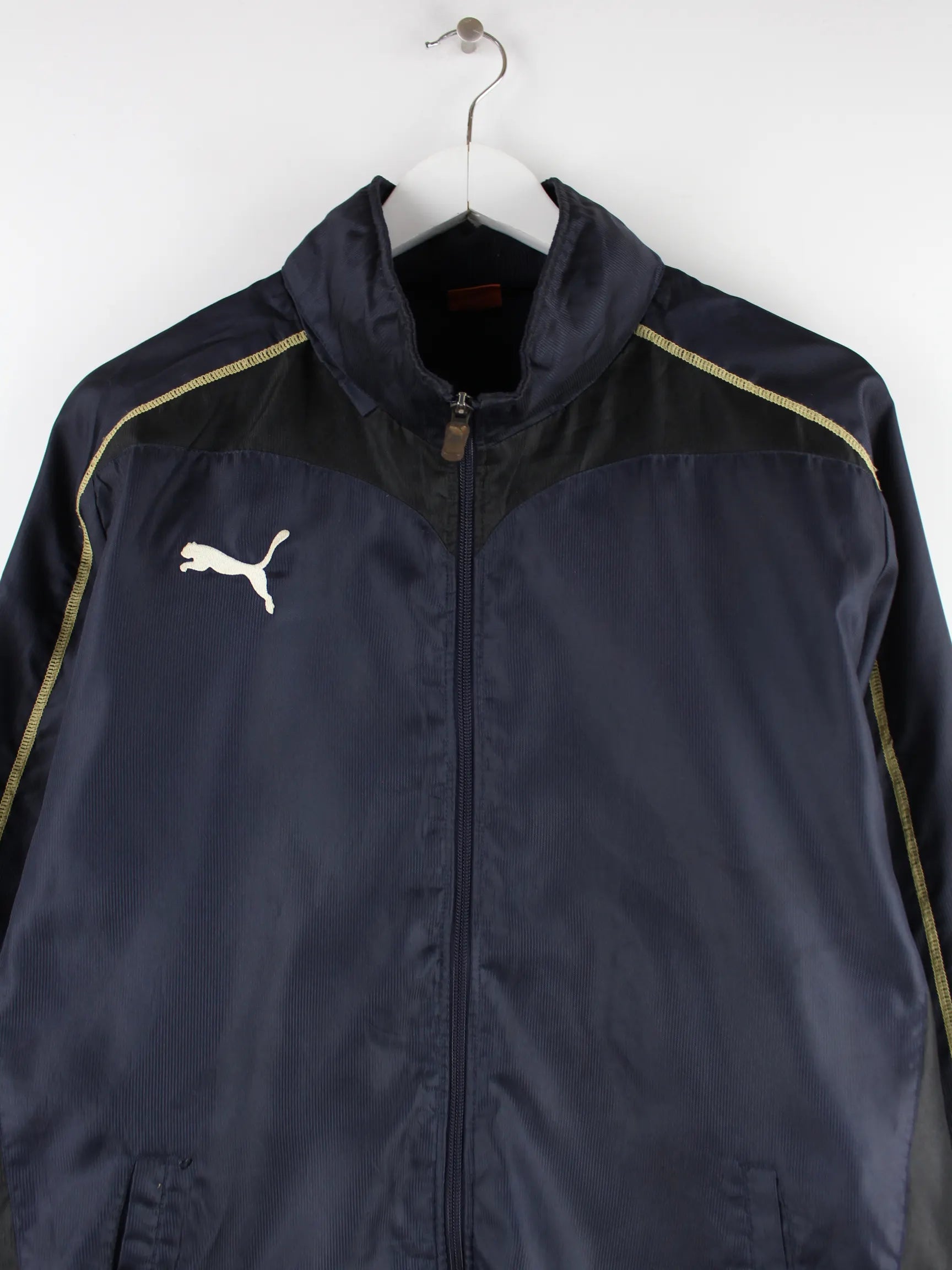 Trainingsjacke vom Label Puma in Größe XL. Sie ist aus Synthetik gemacht und in Grau in Stock.