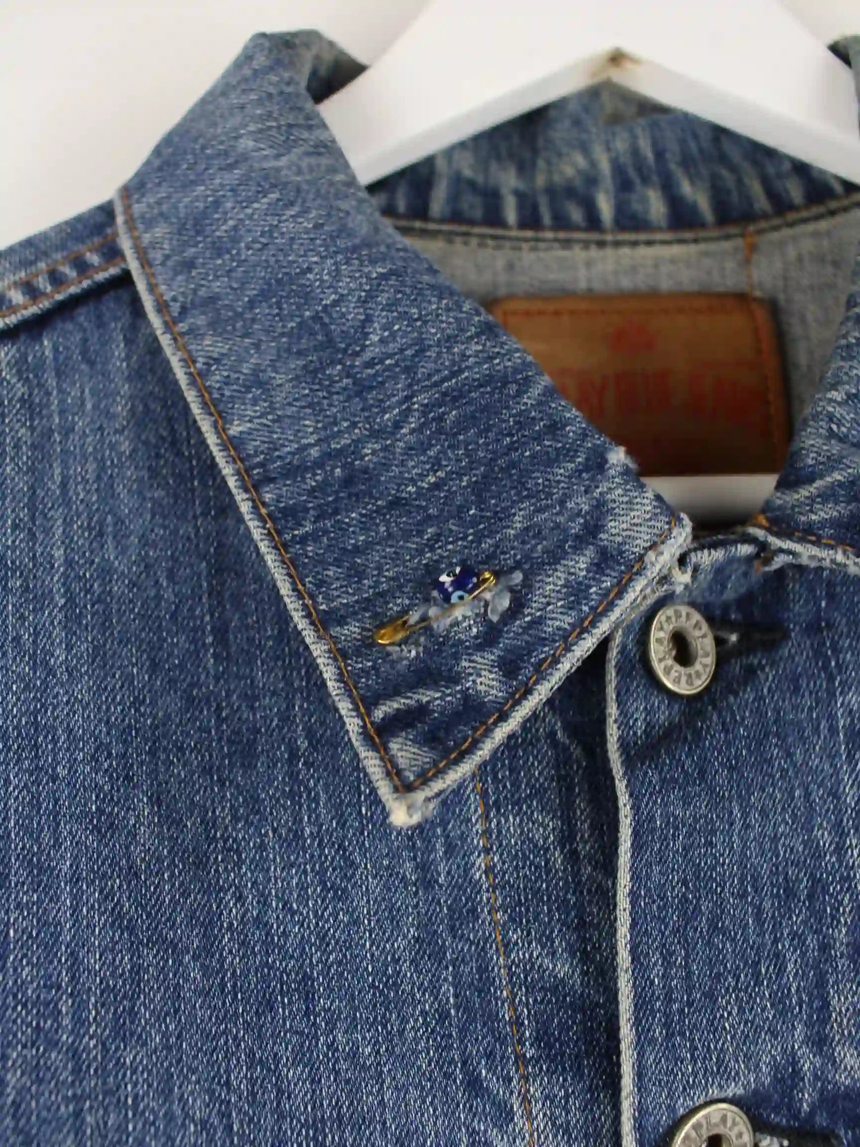 Leichte Jacke der Marke Replay in Größe S. Sie ist aus Baumwolle gemacht und in Blau auf Lager.