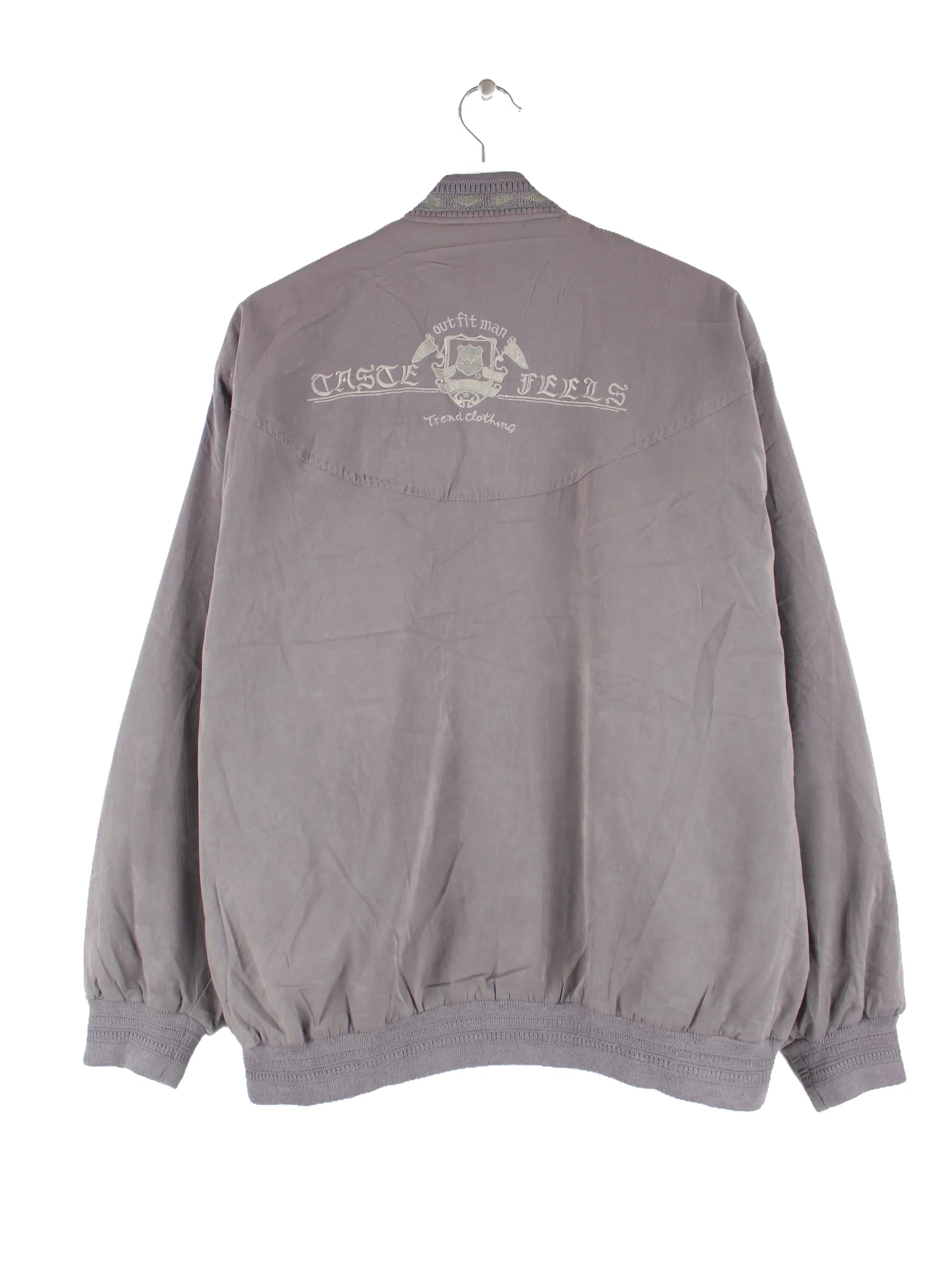 Graue Vintage Leichte Jacke aus den 90'ern in Größe L. Sie ist aus Synthetik angefertigt und in gutem Zustand zu haben.