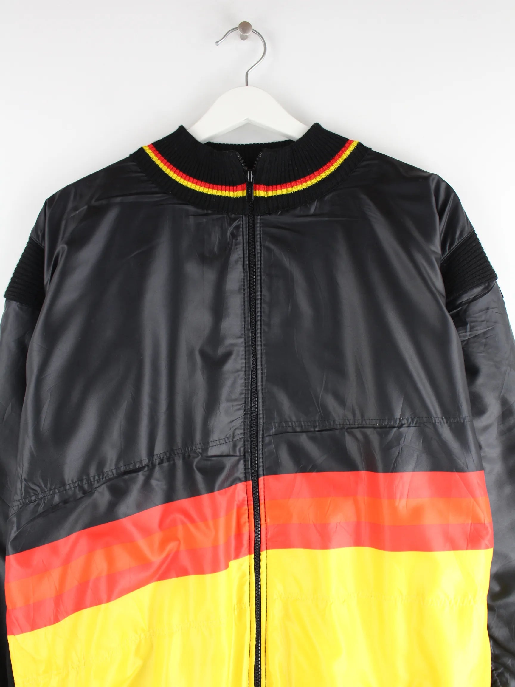 Vintage Leichte Jacke in Größe L aus den 90'ern. Sie ist aus Synthetik gemacht und in Schwarz lieferbar.