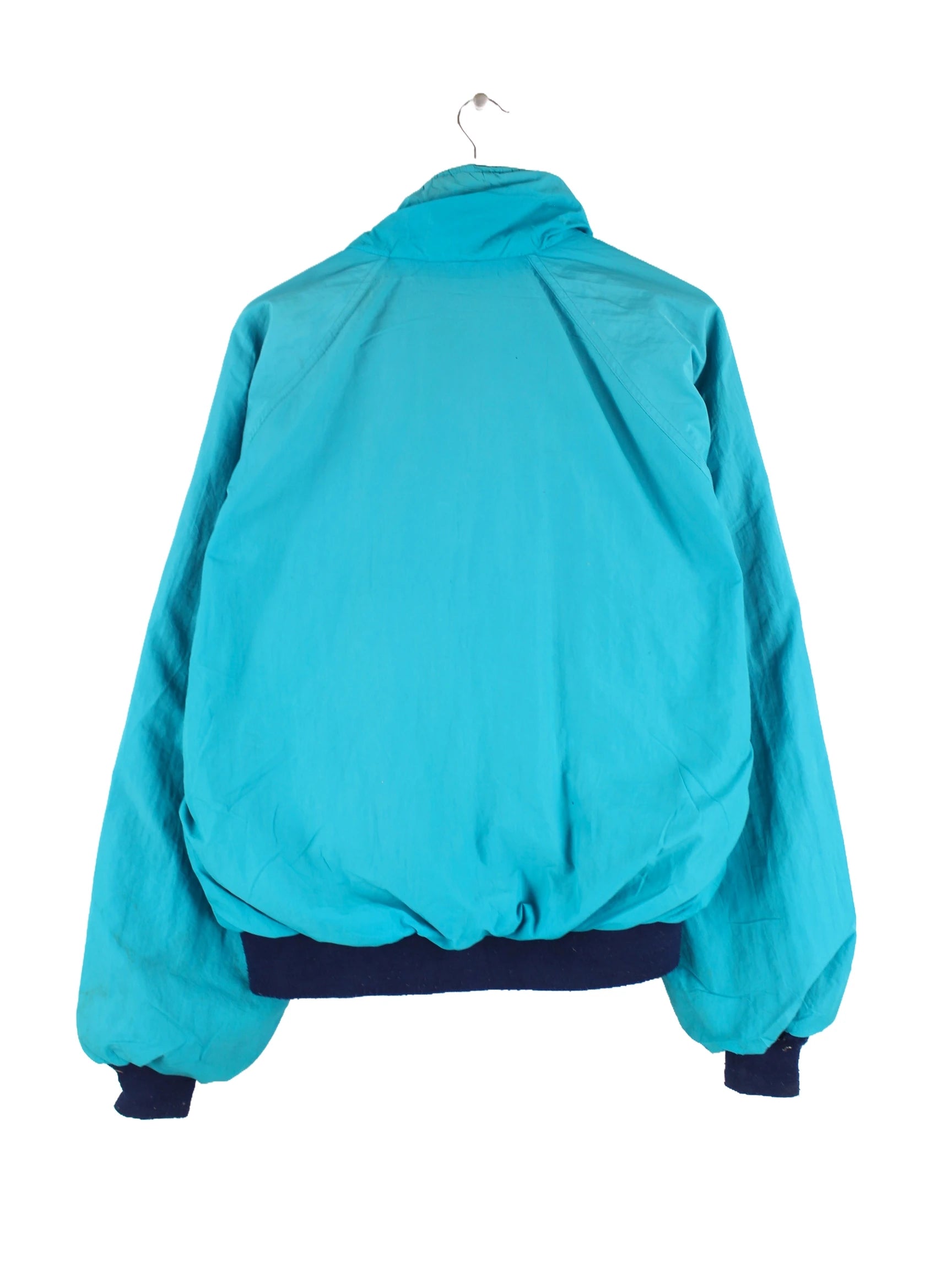 Vintage Leichte Jacke in Größe L aus den 90'ern. Sie ist aus Synthetik gefertigt und in Türkis vorrätig.