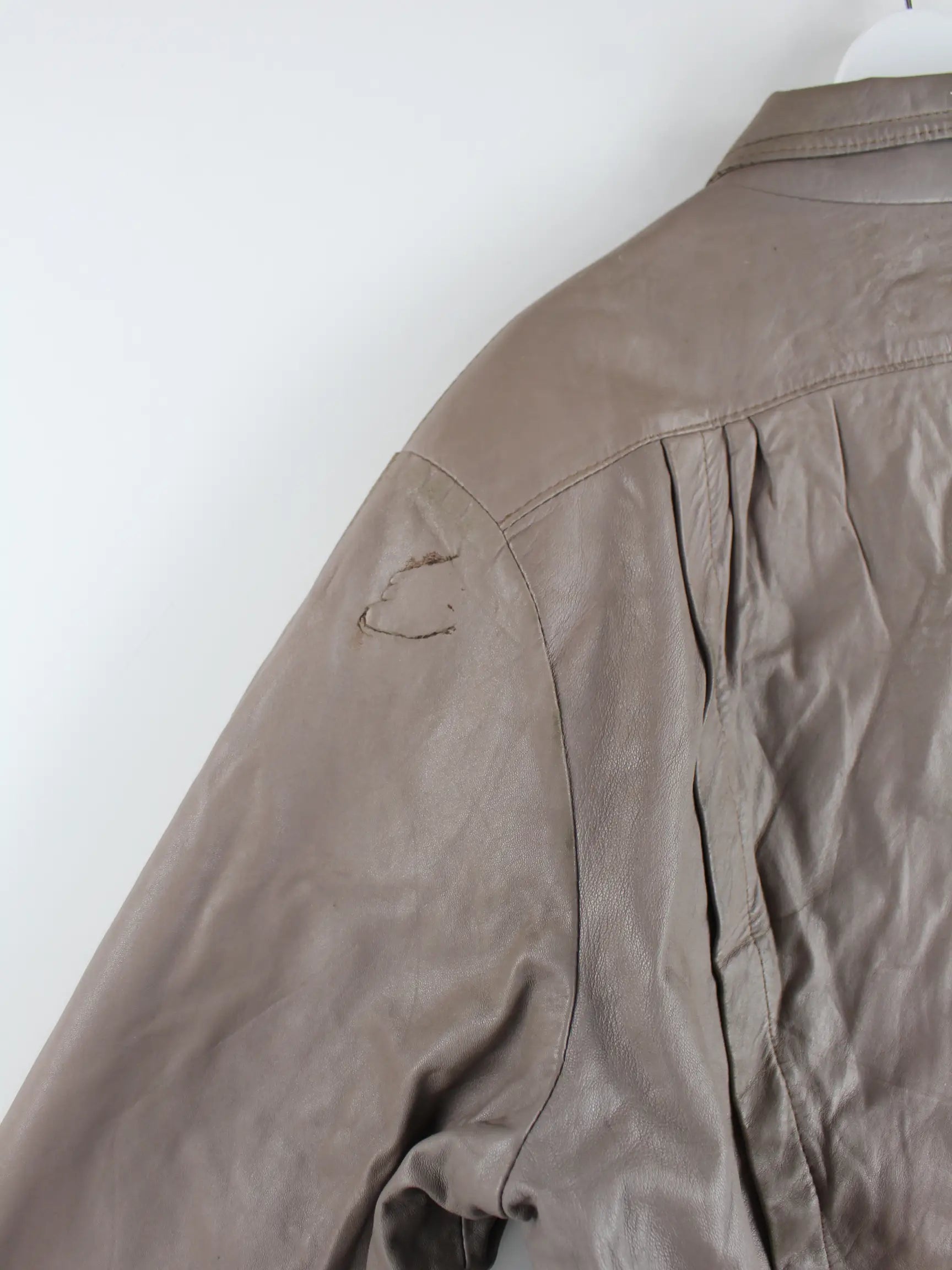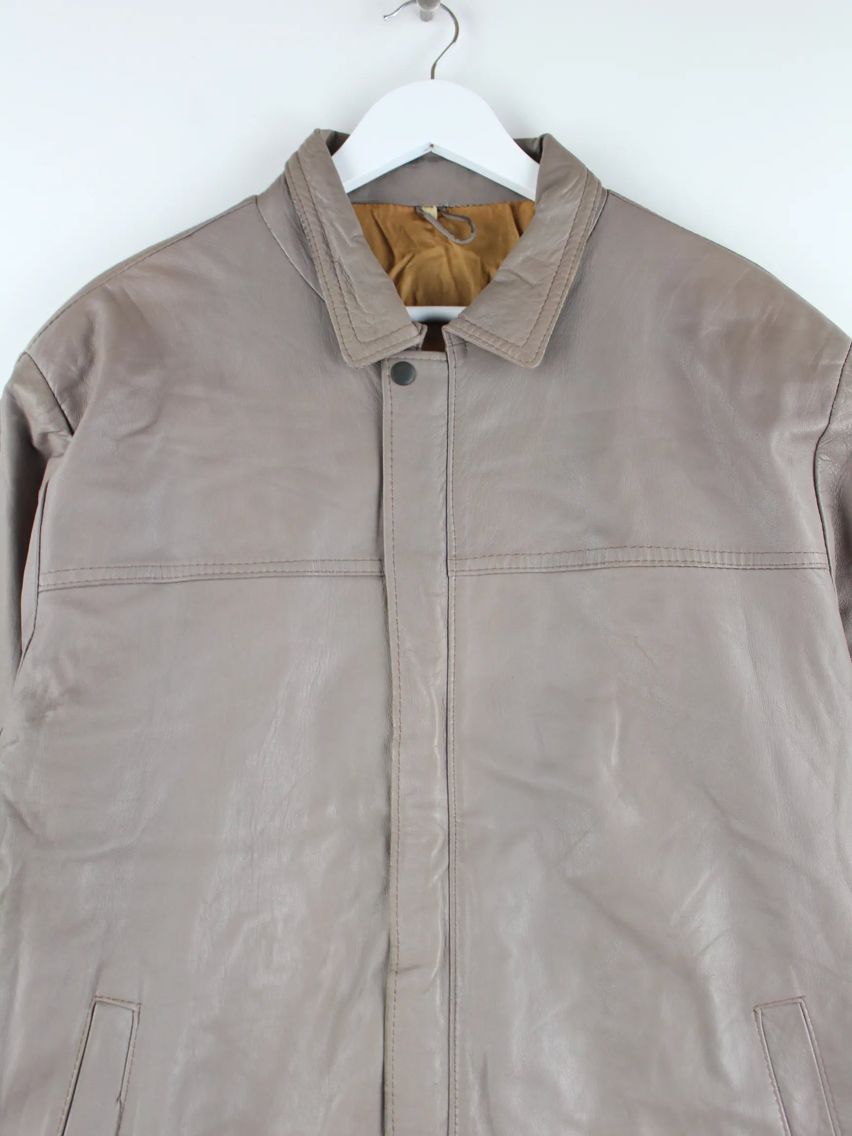 Braune Vintage Jacke aus den 90'ern in Größe XL. Sie ist aus Leder gefertigt. Den Zustand würden wir als 'In Ordnung' bezeichnen (vergl. Bilder).