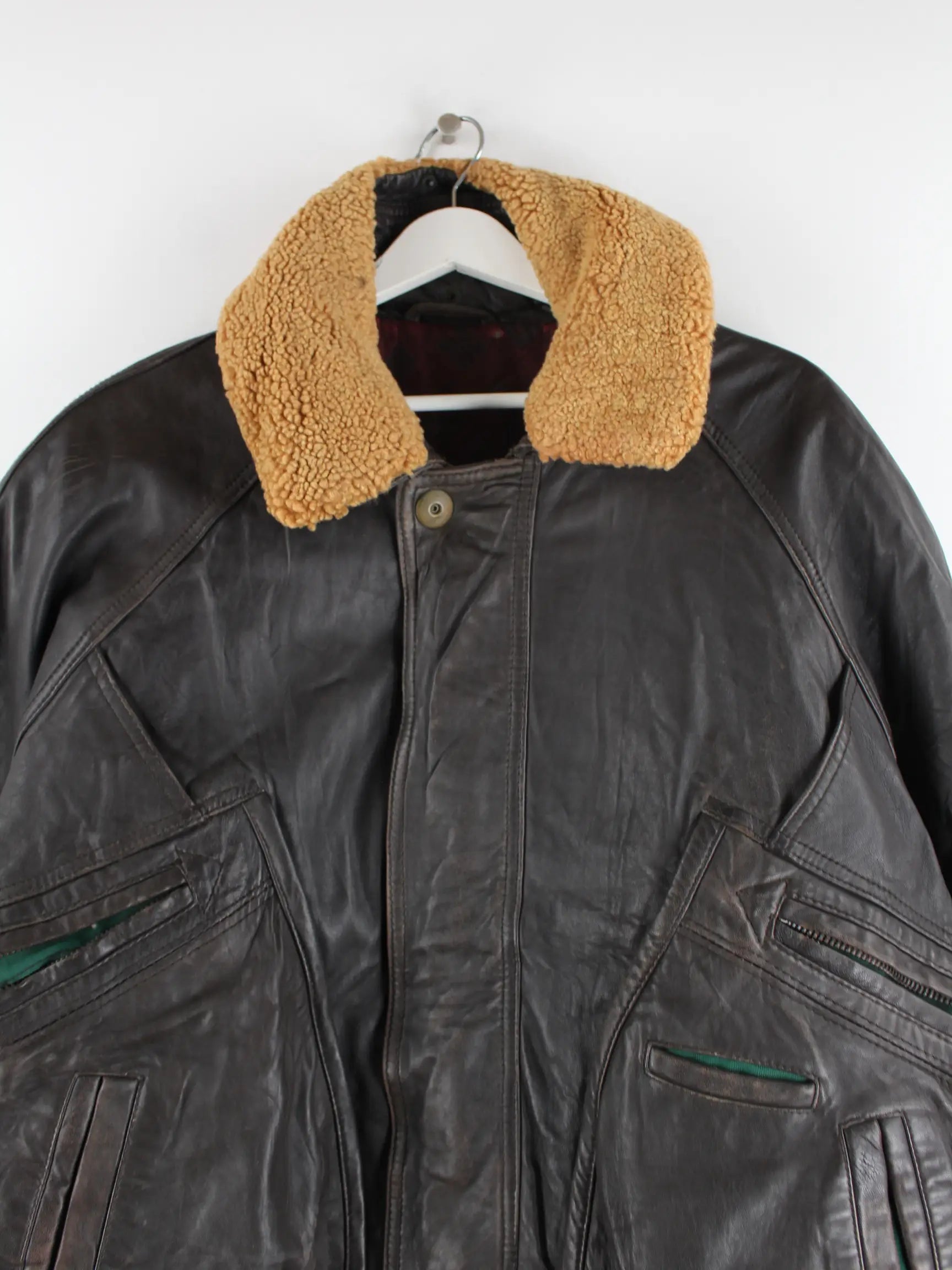 Braune Vintage Jacke aus den 90'ern in Größe XL. Sie ist aus Leder gefertigt und in gutem Zustand in Stock.