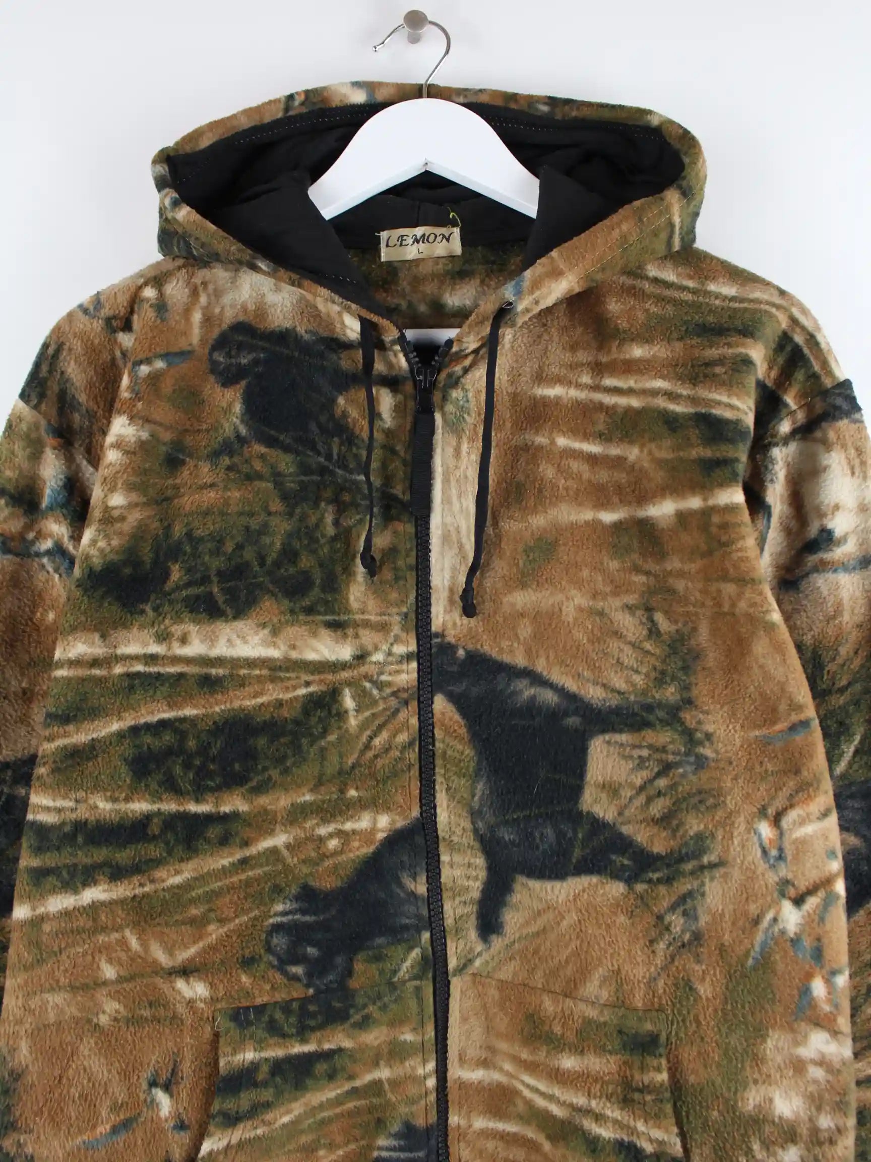 Vintage Leichte Jacke in Größe L aus den 90'ern. Sie ist aus weichem Fleece produziert und in Braun bei uns vorrätig.