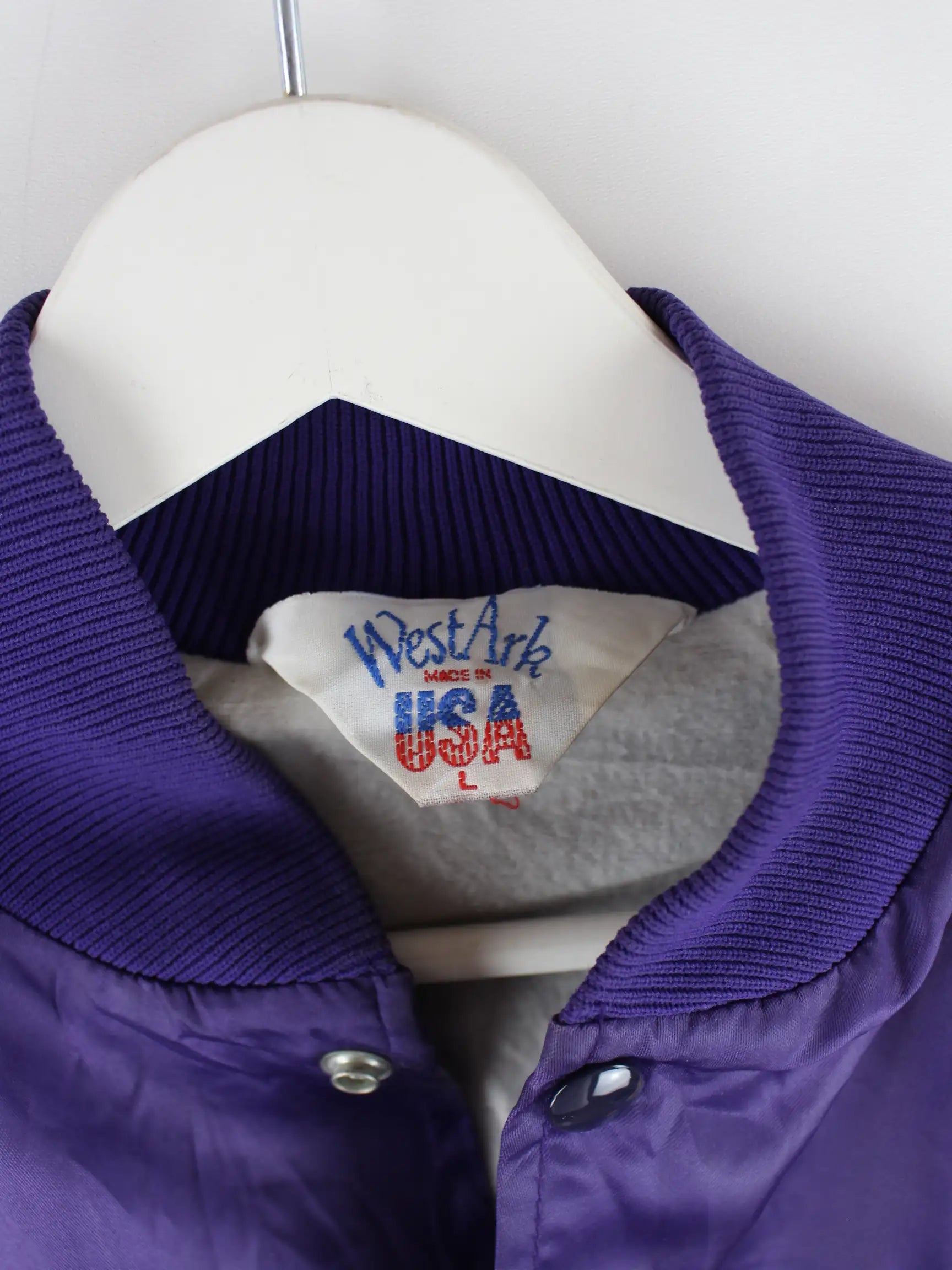 Lilafarbene Vintage Leichte Jacke aus den 90'ern in Größe L. Sie ist aus Synthetik produziert und in sehr gutem Zustand zu haben.