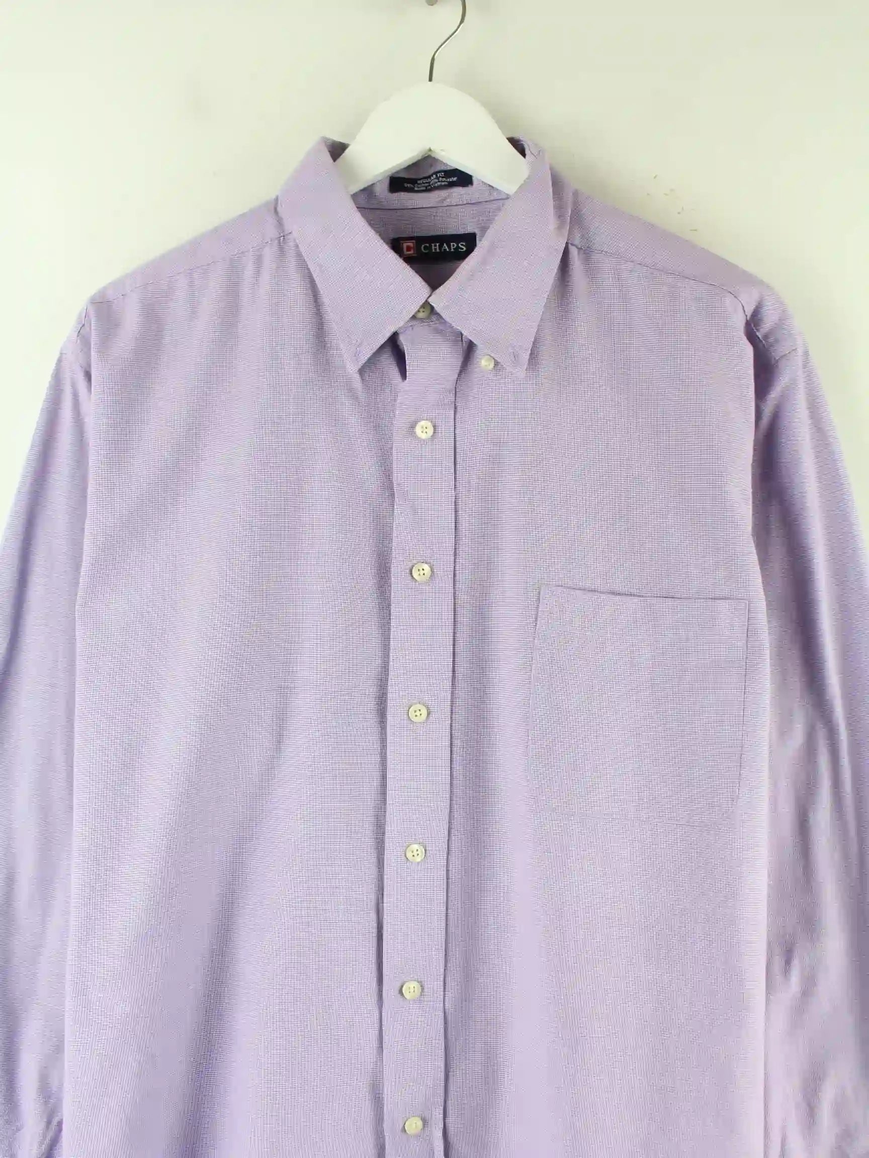 Lilafarbenes Hemd des Labels Chaps by Ralph Lauren in Größe XL. Es ist aus Baumwolle gefertigt und in sehr gutem Zustand bei uns vorrätig.