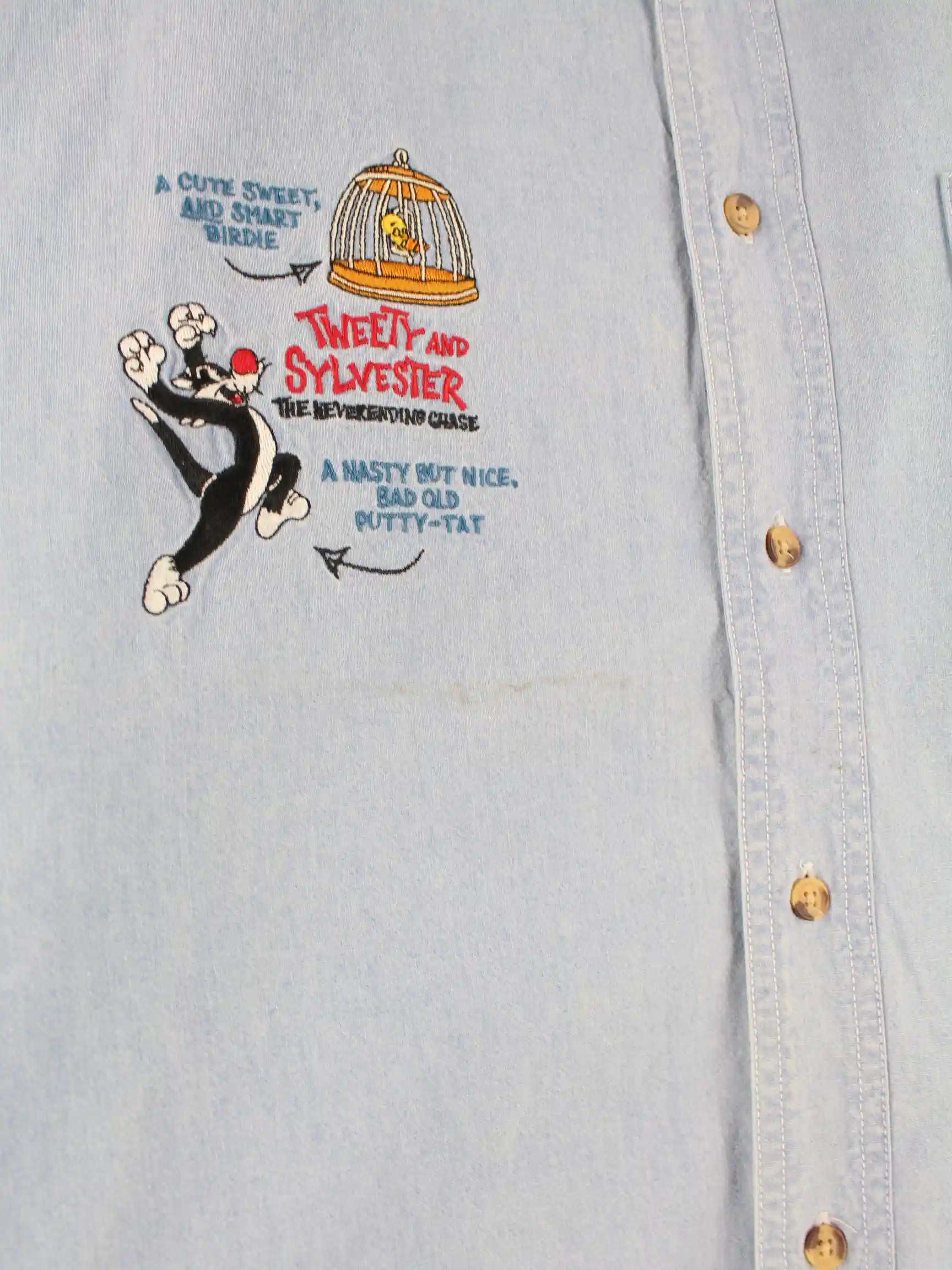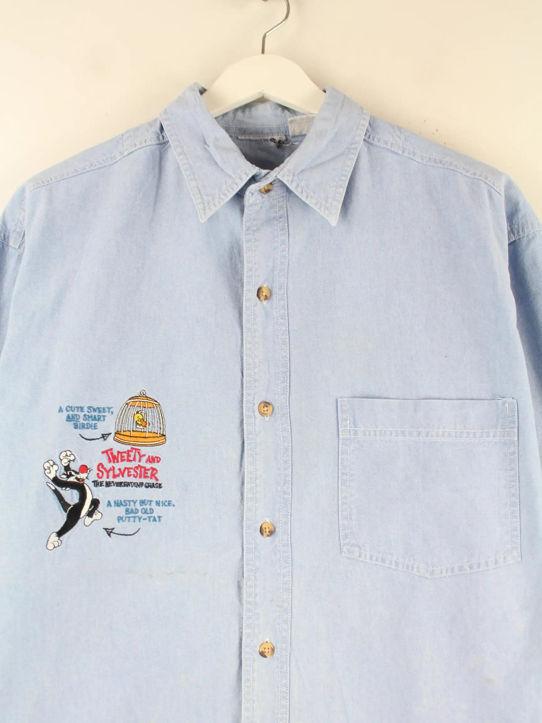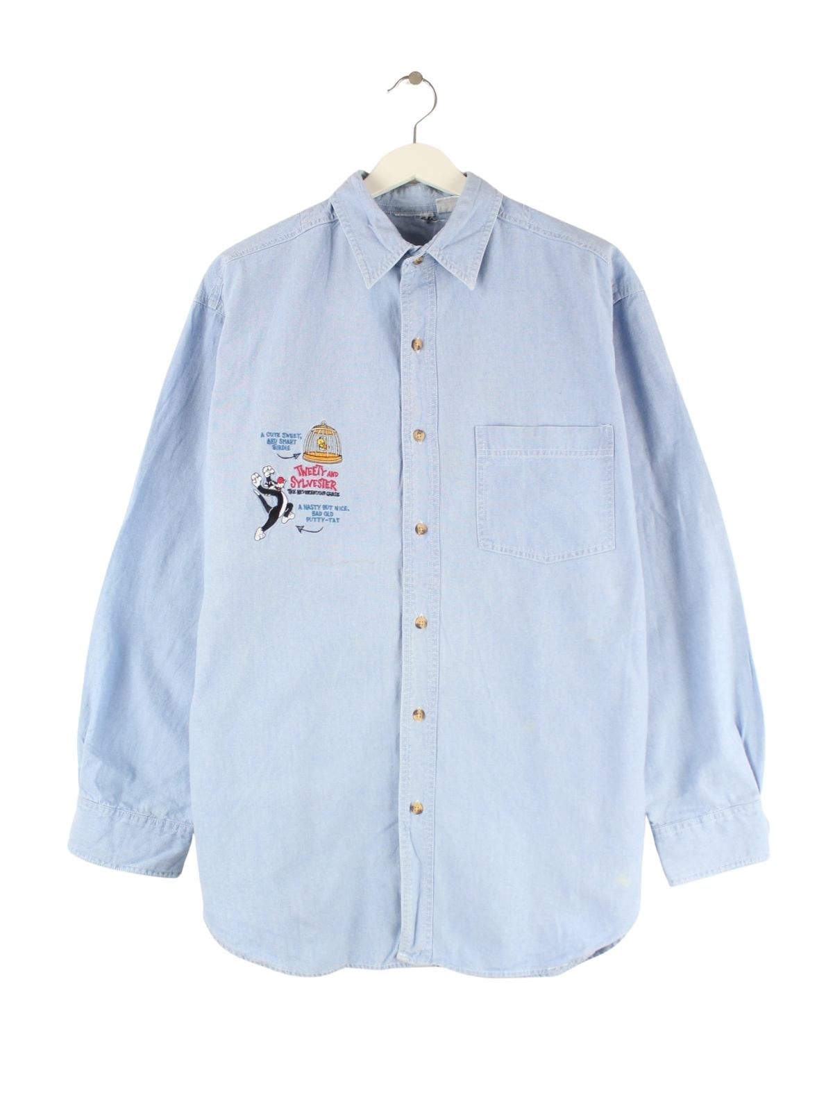Looney Tunes 90s Vintage Tweety Sylvester Jeans Hemd Blau M