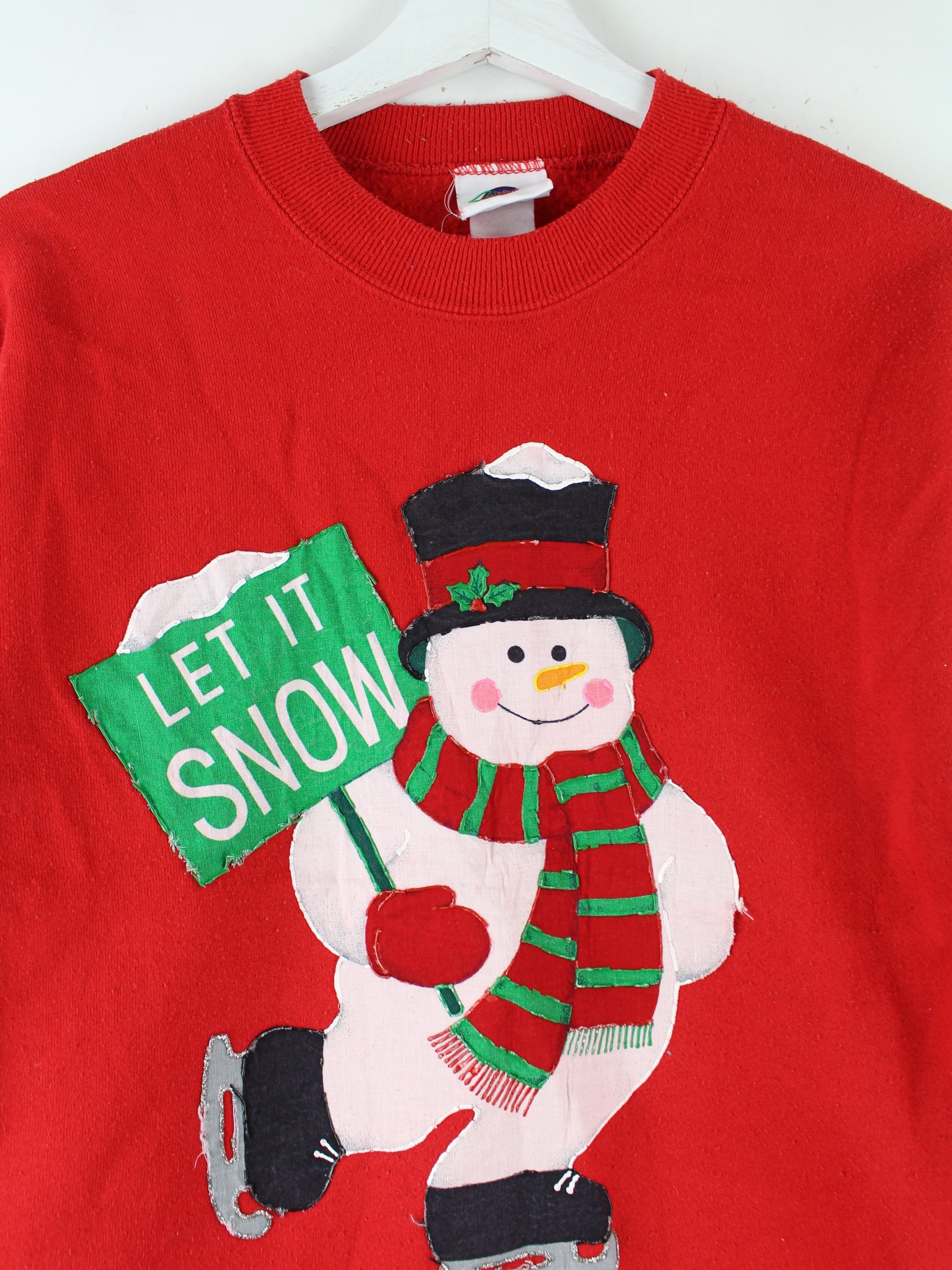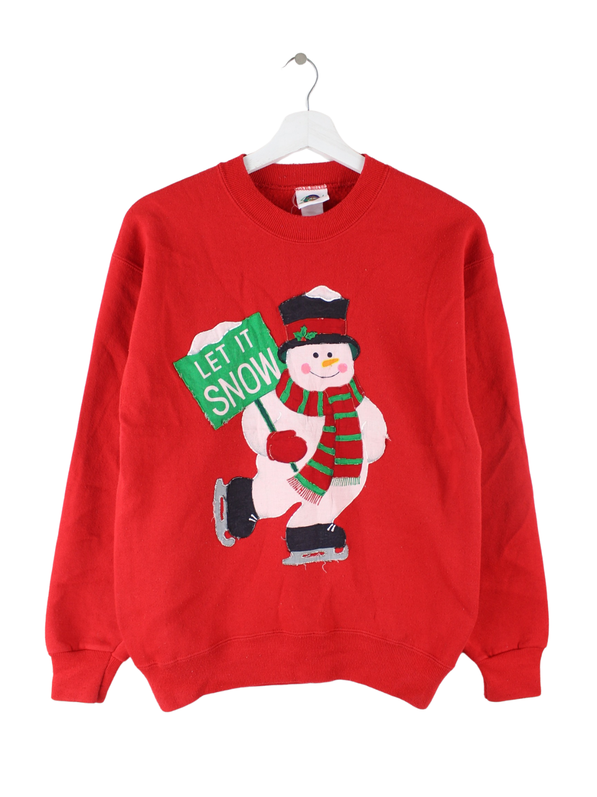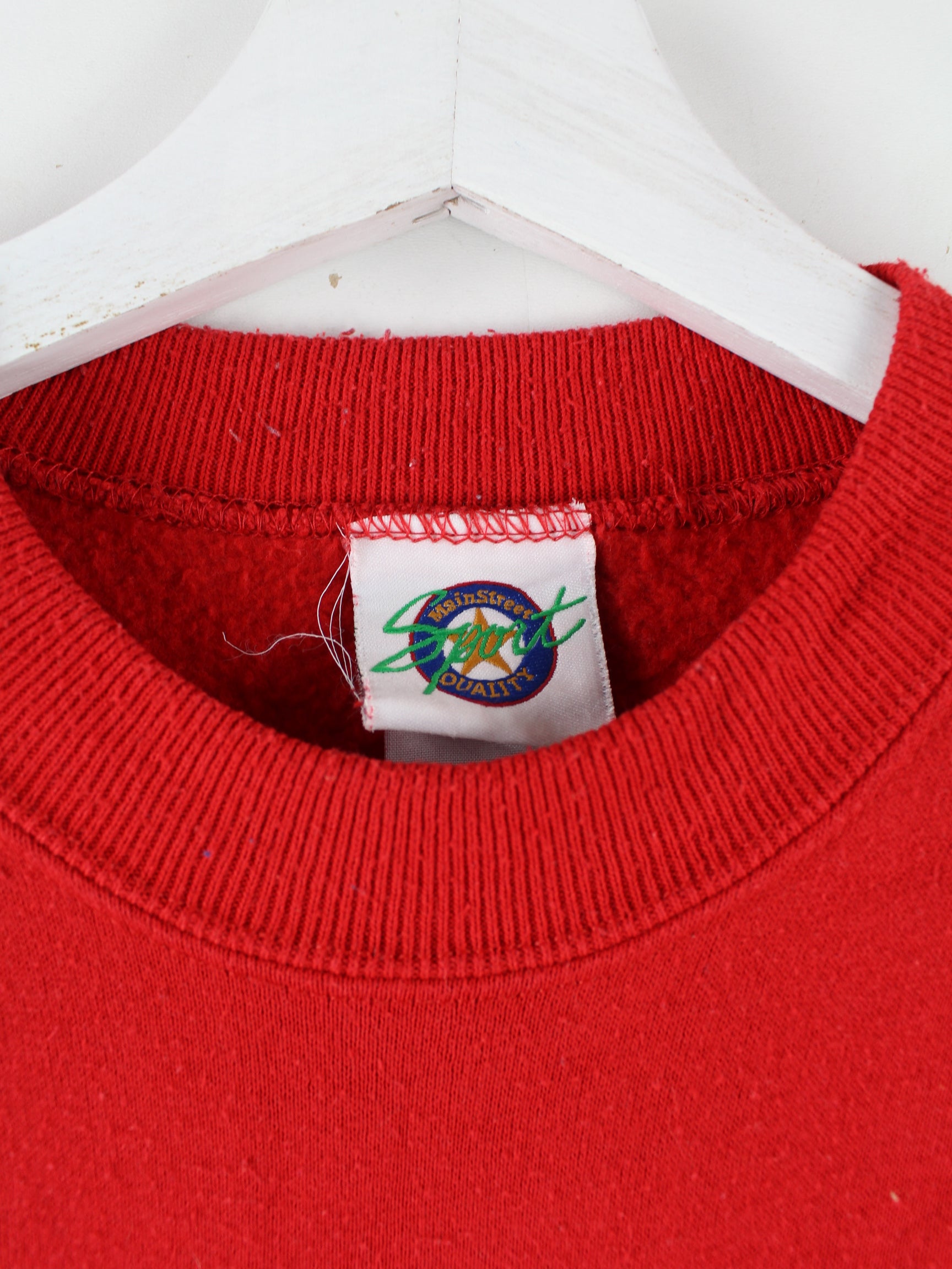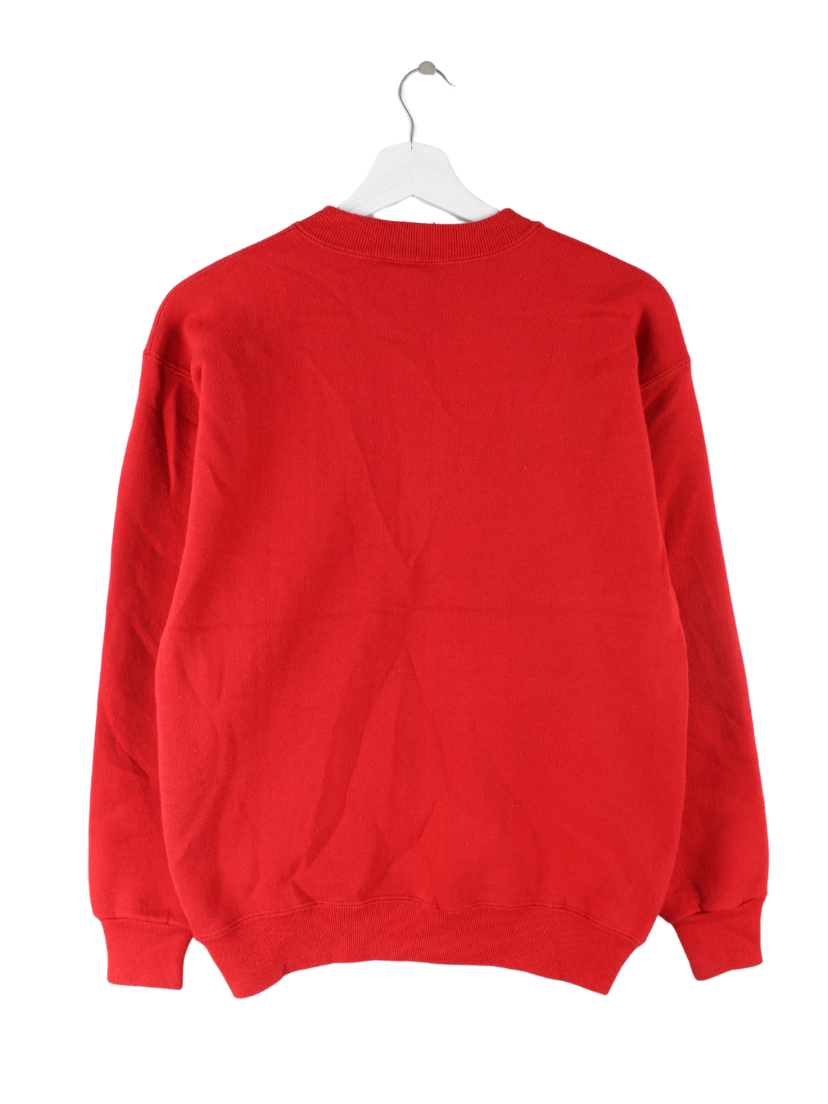 Roter Vintage Sweater aus den 90'ern in Größe S. Er ist aus einer Baumwollmischung und in sehr gutem Zustand lieferbar.