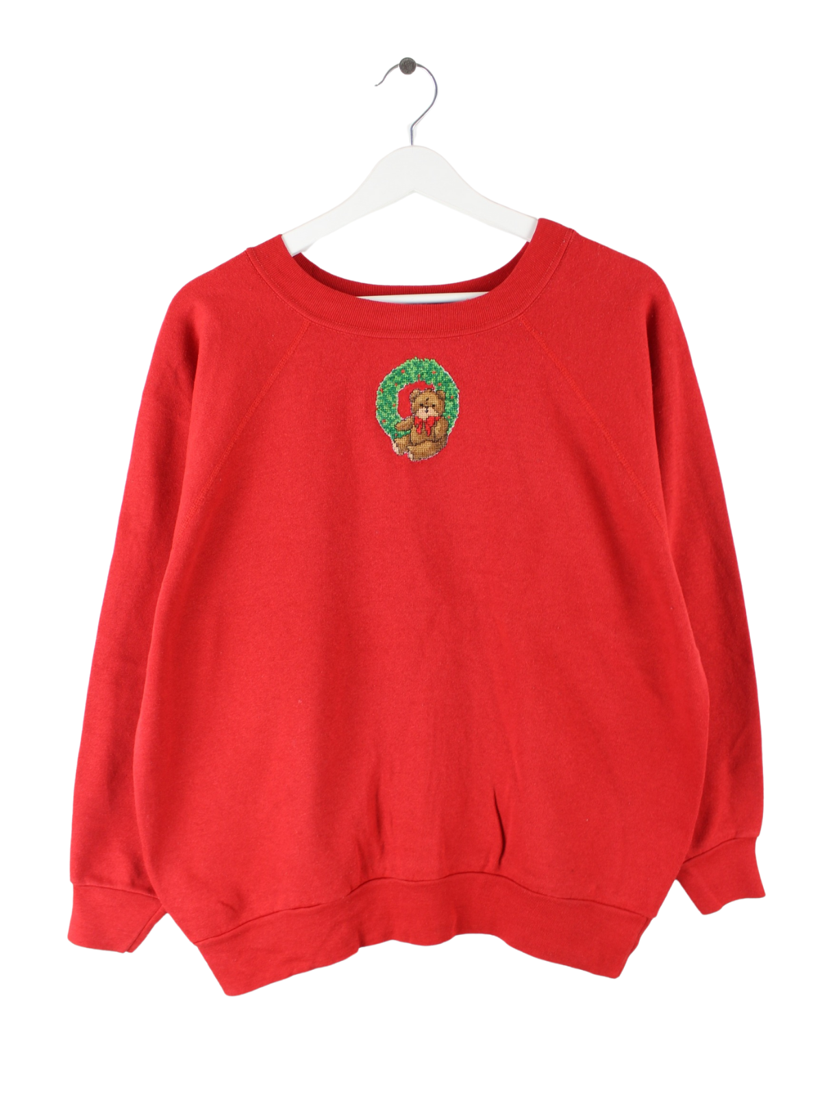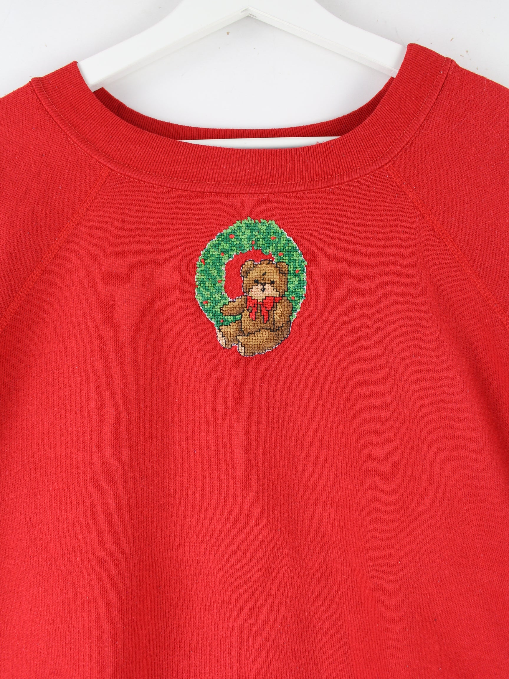 Vintage Damen 80s Christmas Stitched Sweater Rot L