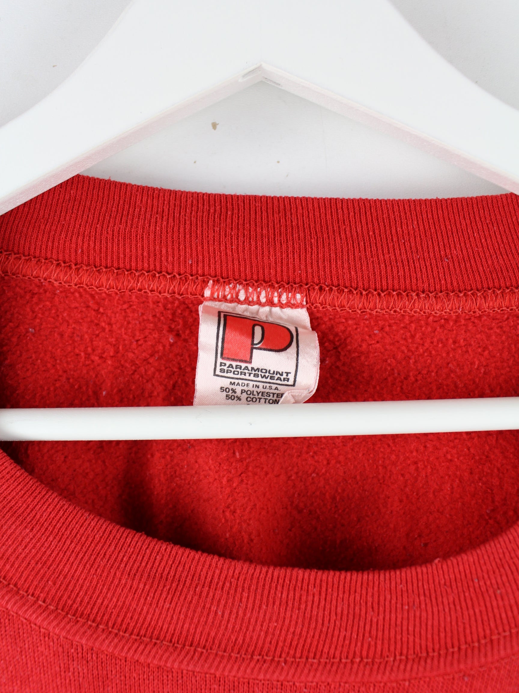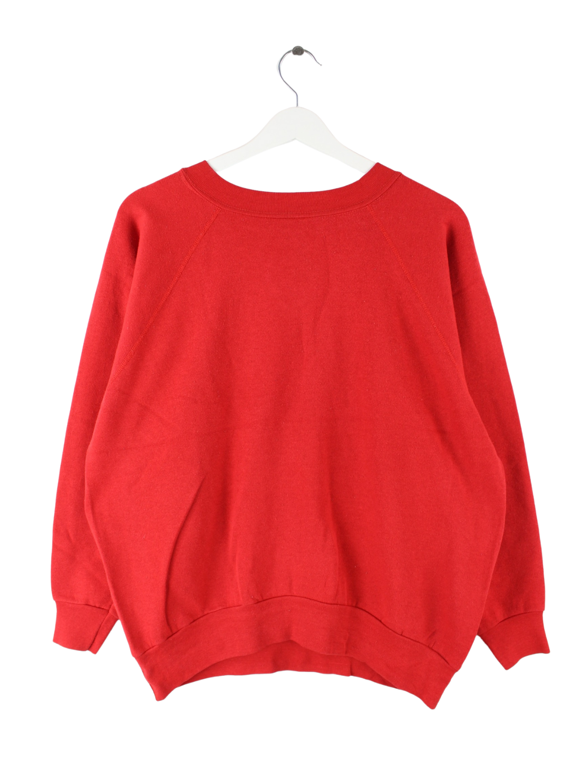 Roter Vintage Sweater aus den 80'ern in Größe L. Er ist aus einer Baumwollmischung und in sehr gutem Zustand im Bestand.
