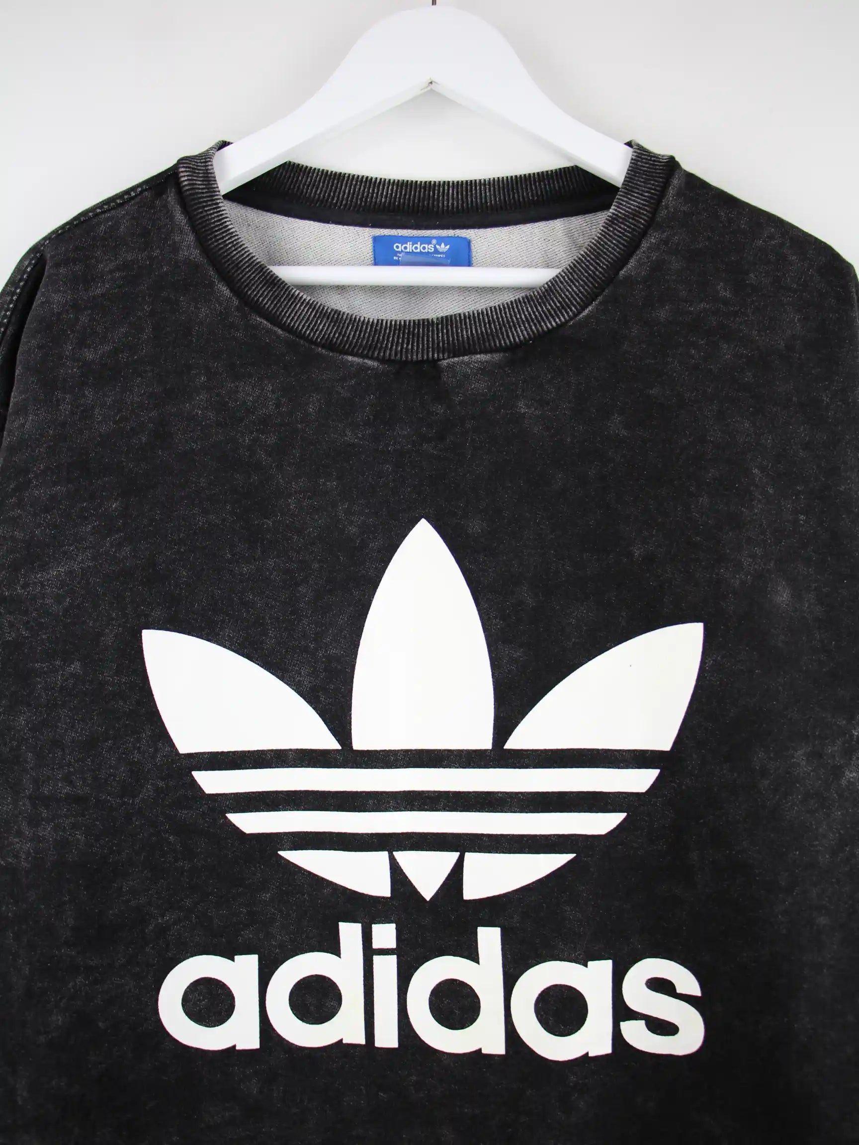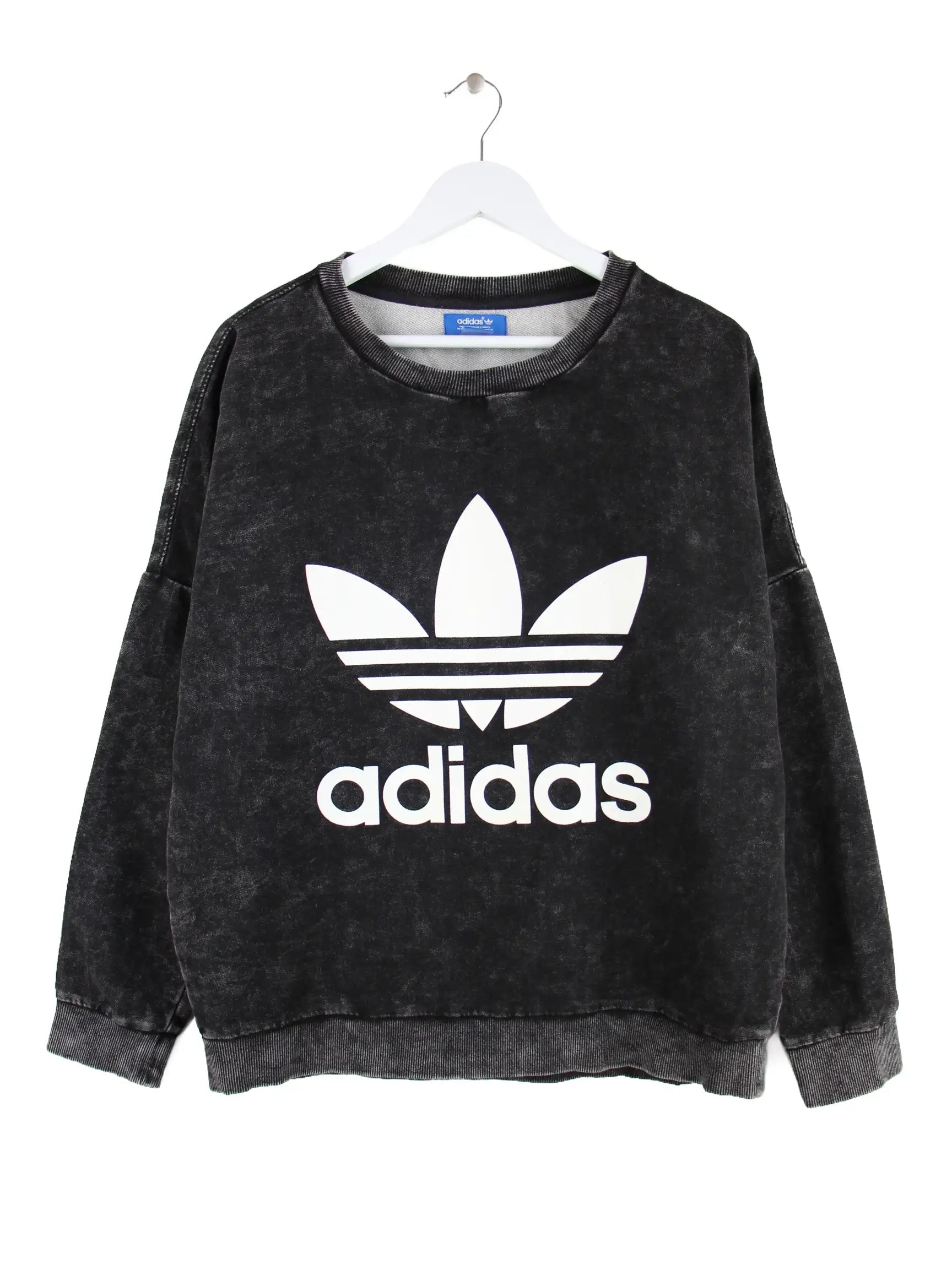 Adidas Damen Stone Wash Big Logo Print Oversized Sweater Schwarz XL