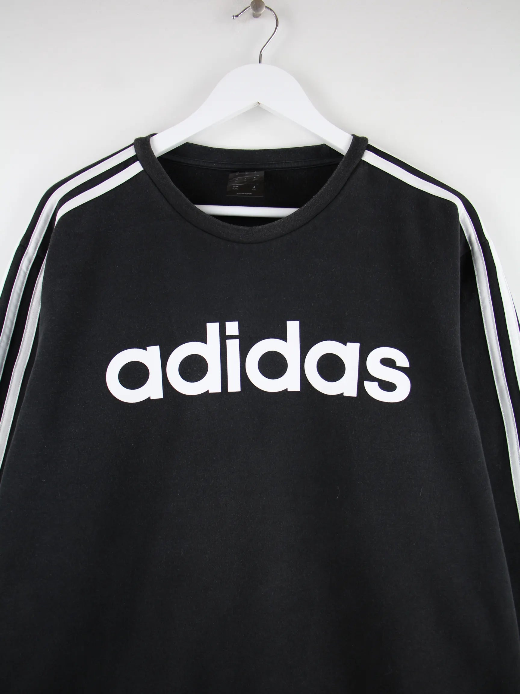 Schwarzer Sweater von Adidas in Größe XL. Er ist aus einer Baumwollmischung produziert und in gutem Zustand auf Lager. Mit seltenem Spellout Print.