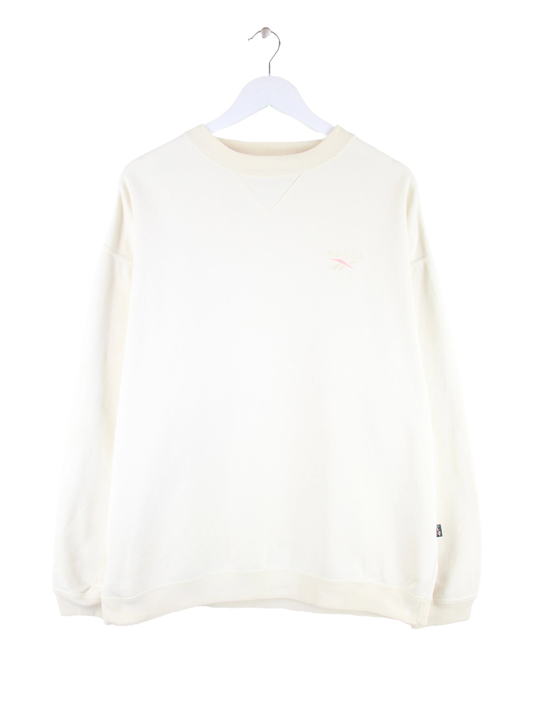 Weißer Sweater des Labels Reebok in Größe XL. Er ist aus einer Baumwollmischung angefertigt und in gutem Zustand vorrätig.