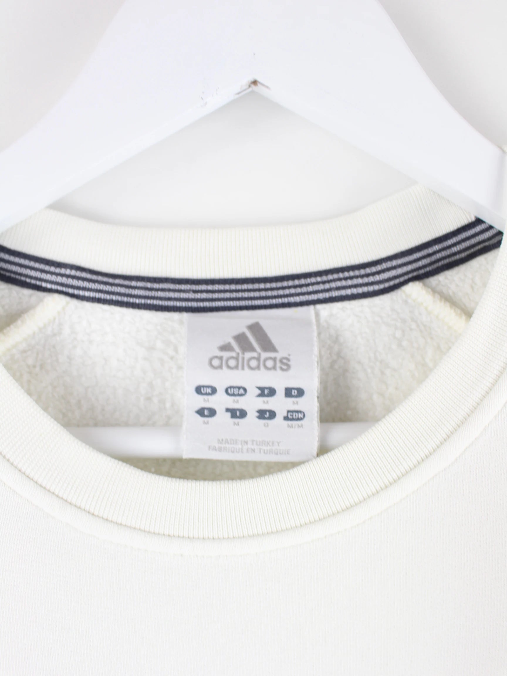 Weißer Sweater des Labels Adidas in Größe M. Er ist aus einer Baumwollmischung produziert und in gutem Zustand im Angebot.