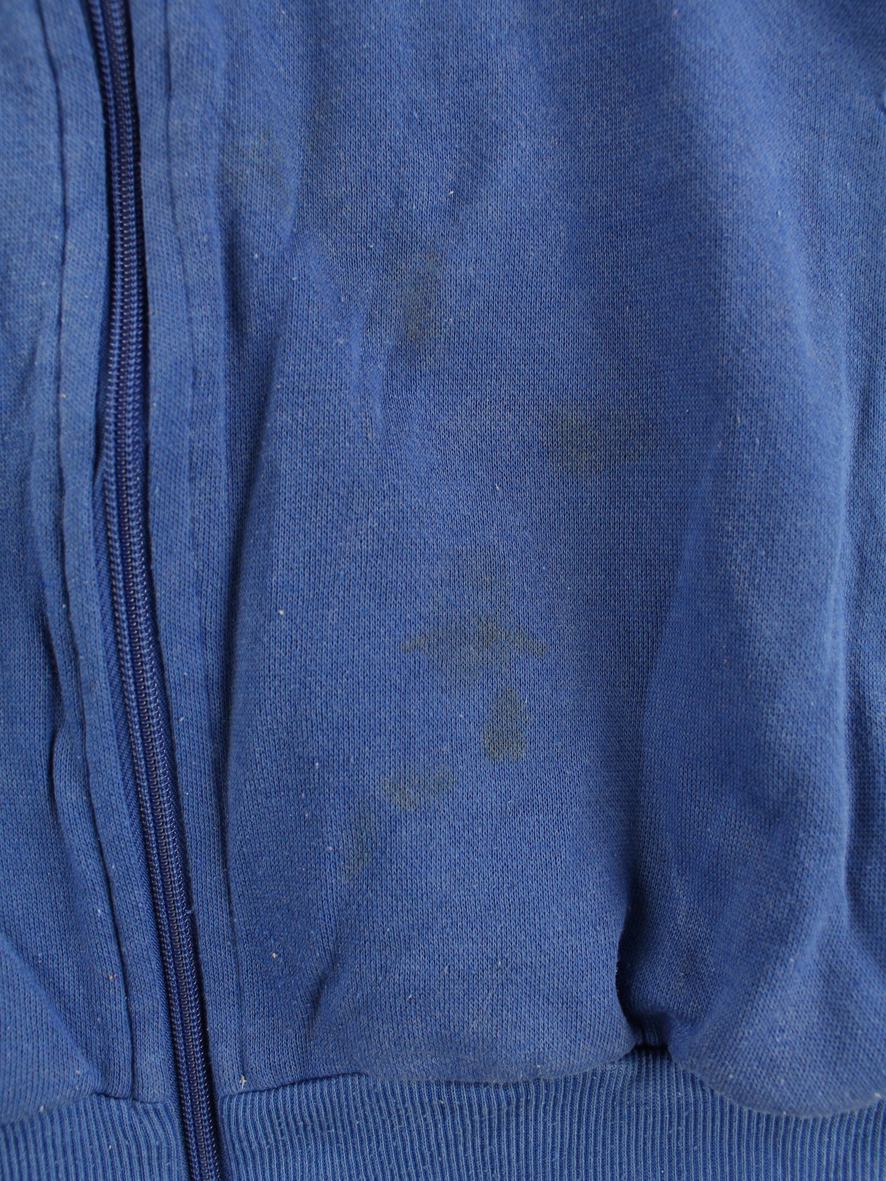 Blue sweat jacket from Adidas from the 80's in size XL. It is made from a cotton blend and is in good condition on stock.