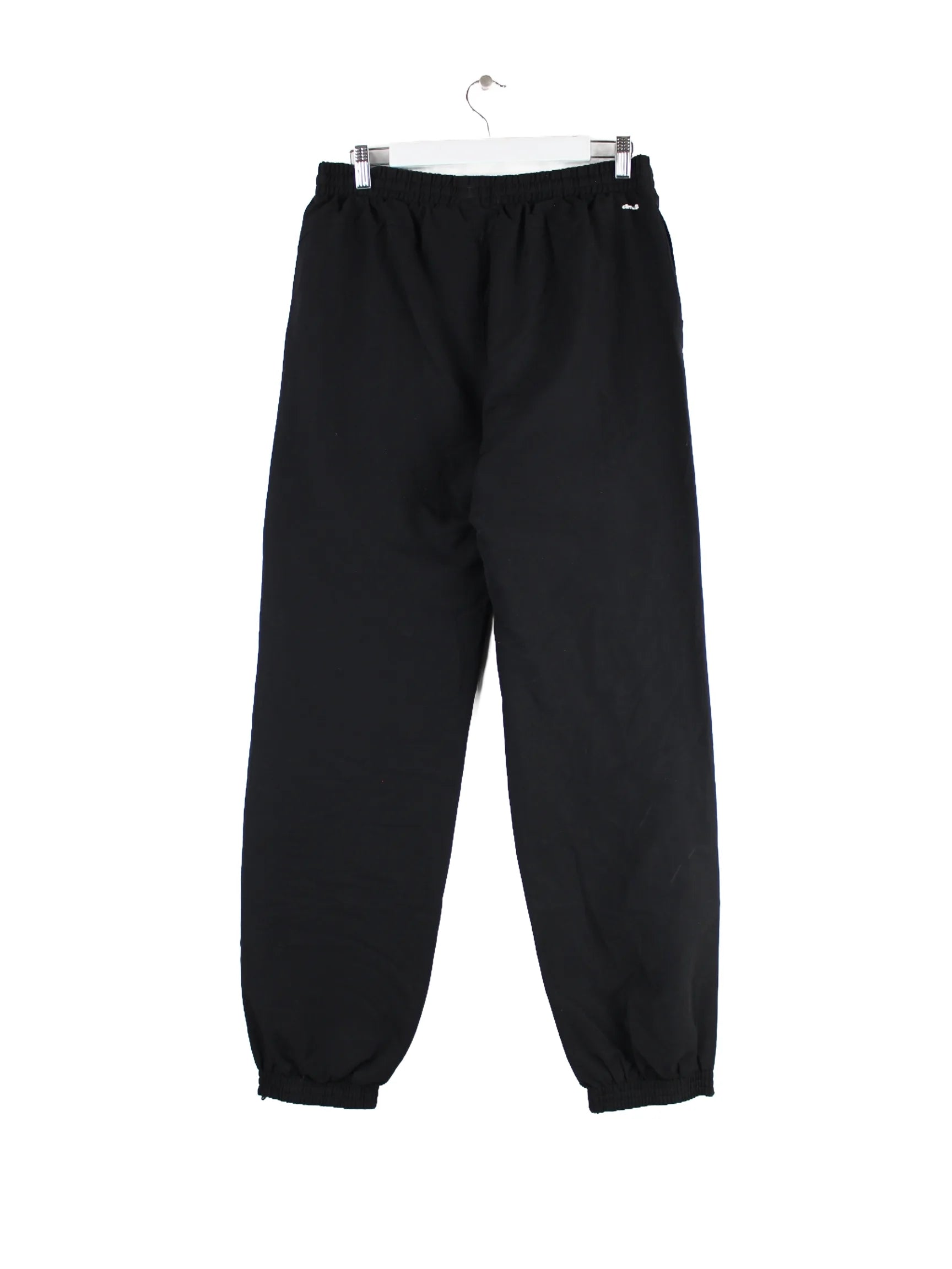 Schwarze Track Pants des Labels Adidas in Größe M. Sie sind aus Synthetik hergestellt und in gutem Zustand zu haben.