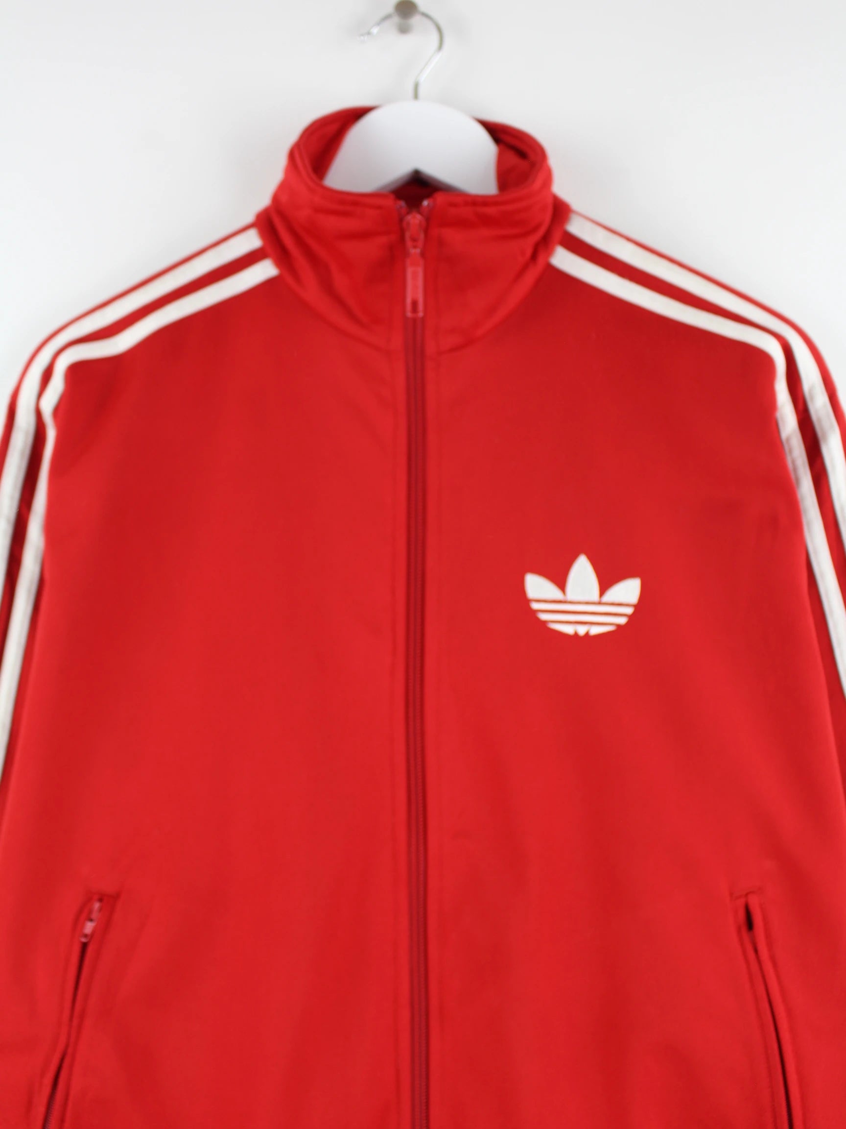 Trainingsjacke von Adidas in Größe S aus Anfang der 2000'er. Sie ist aus Synthetik hergestellt und in Rot bei uns vorrätig.